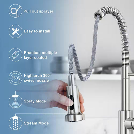 AKLFGN Kitchen Faucet Pull Out Sprayer Kitchen Faucet, Deckplate, Brushed Nickel