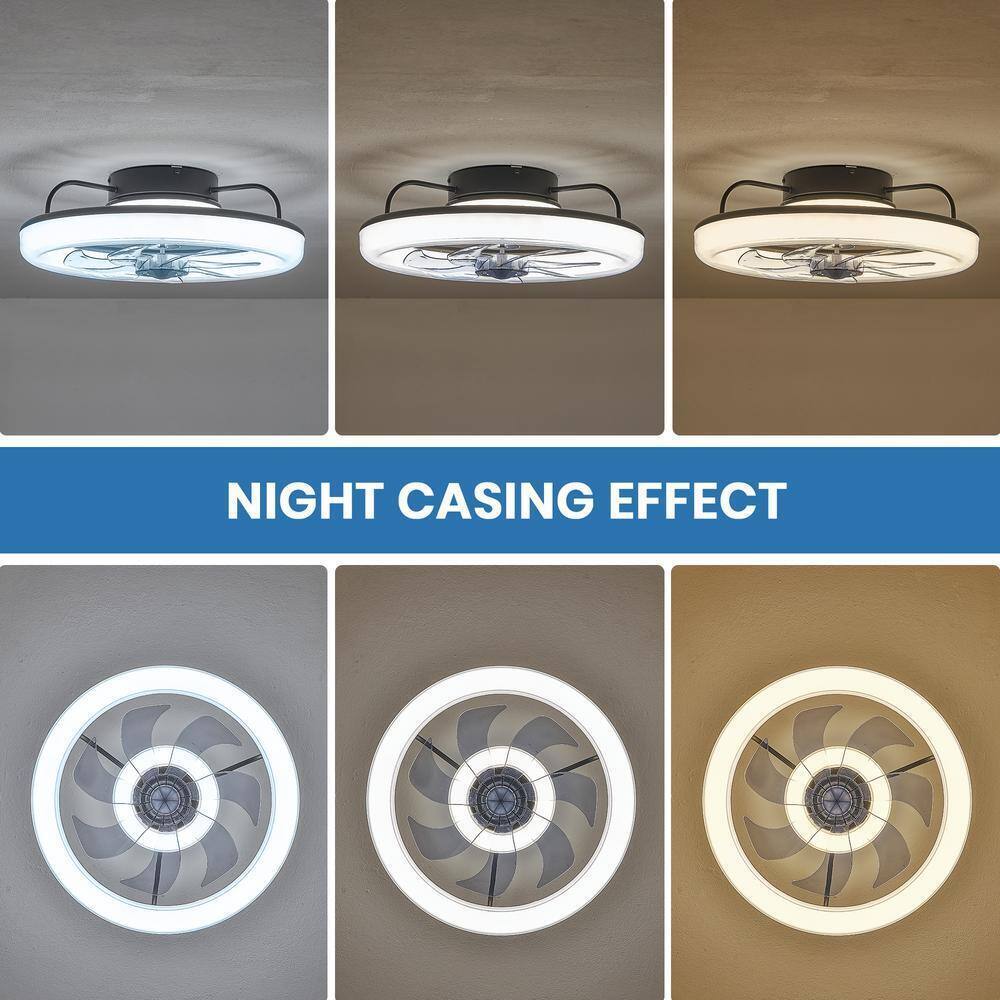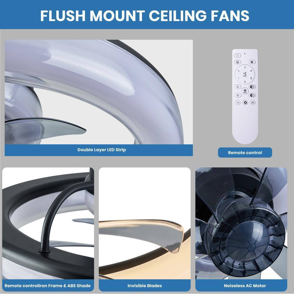 This gorgeous and attractive 20 in. Black indoor/outdoor Ceiling Fan with LED lights and Remote Control illuminates your space and provides you different options to change colors of your room. There are three colors: white light, warm light and natural light. You can switch between three colors based on the environment of your space. Cool down any living room or bedroom with the drum style in 20 in. in Dia and 7.08 in. in H. 3-light tones and 6-speed, which can be switched through the remote app control. The latest DC motor is more stable and quieter which can save more energy and bring you and your family cool and comfortable. The unique and simple design of this ceiling fan with lights plus the black color makes it versatile and suitable for almost all scenes especially for kid's room, small dining room, bedroom, room office, study room, kitchen, restaurant,etc. This beautiful ceiling fan with light also makes it ideal for your home decoration.- Modern Flush Mount Ceiling Fans 2 in 1 Design - Modern design low profile ceiling fan with LED light keeps your space interior stylish and inspired