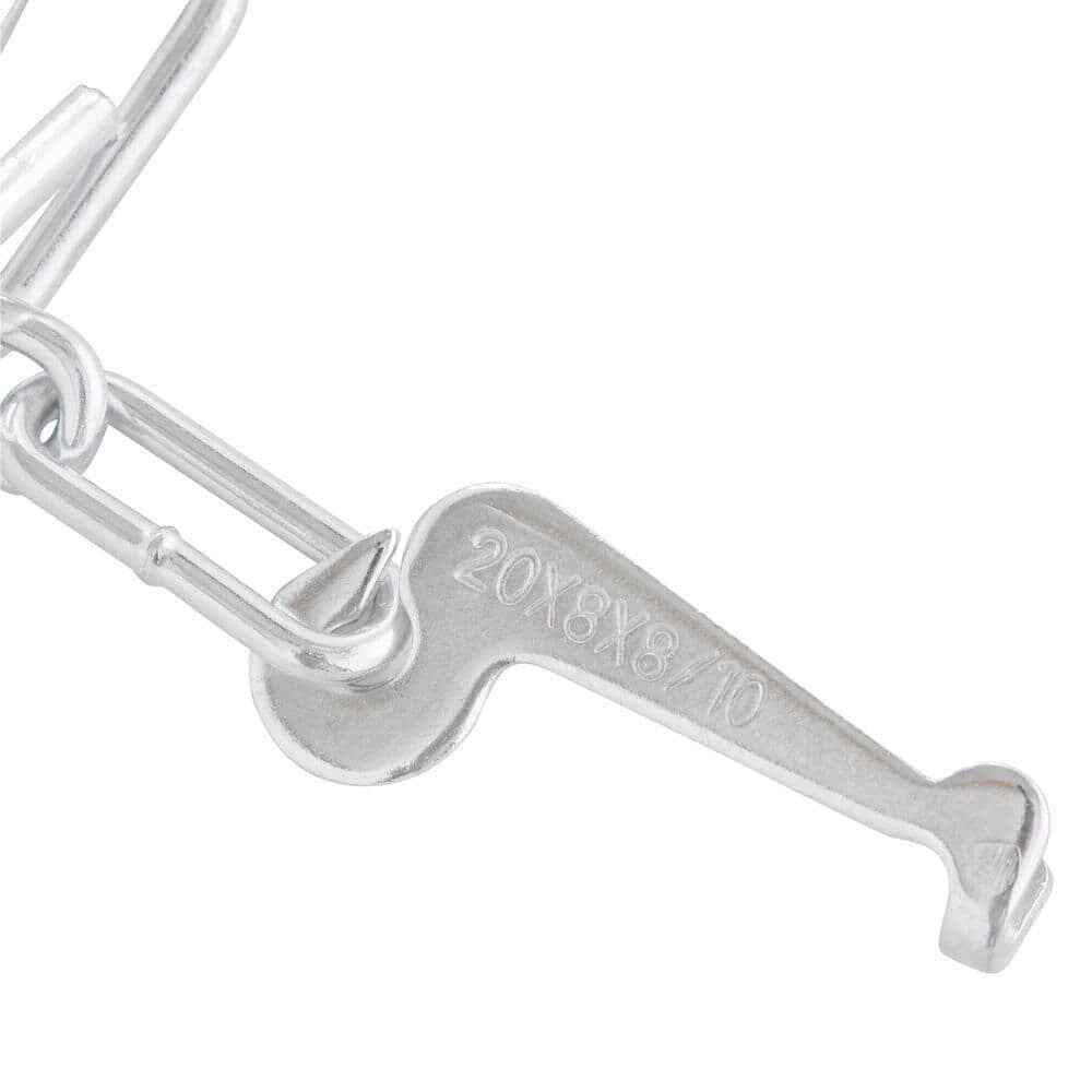 - Contents include two stainless steel tire chains.