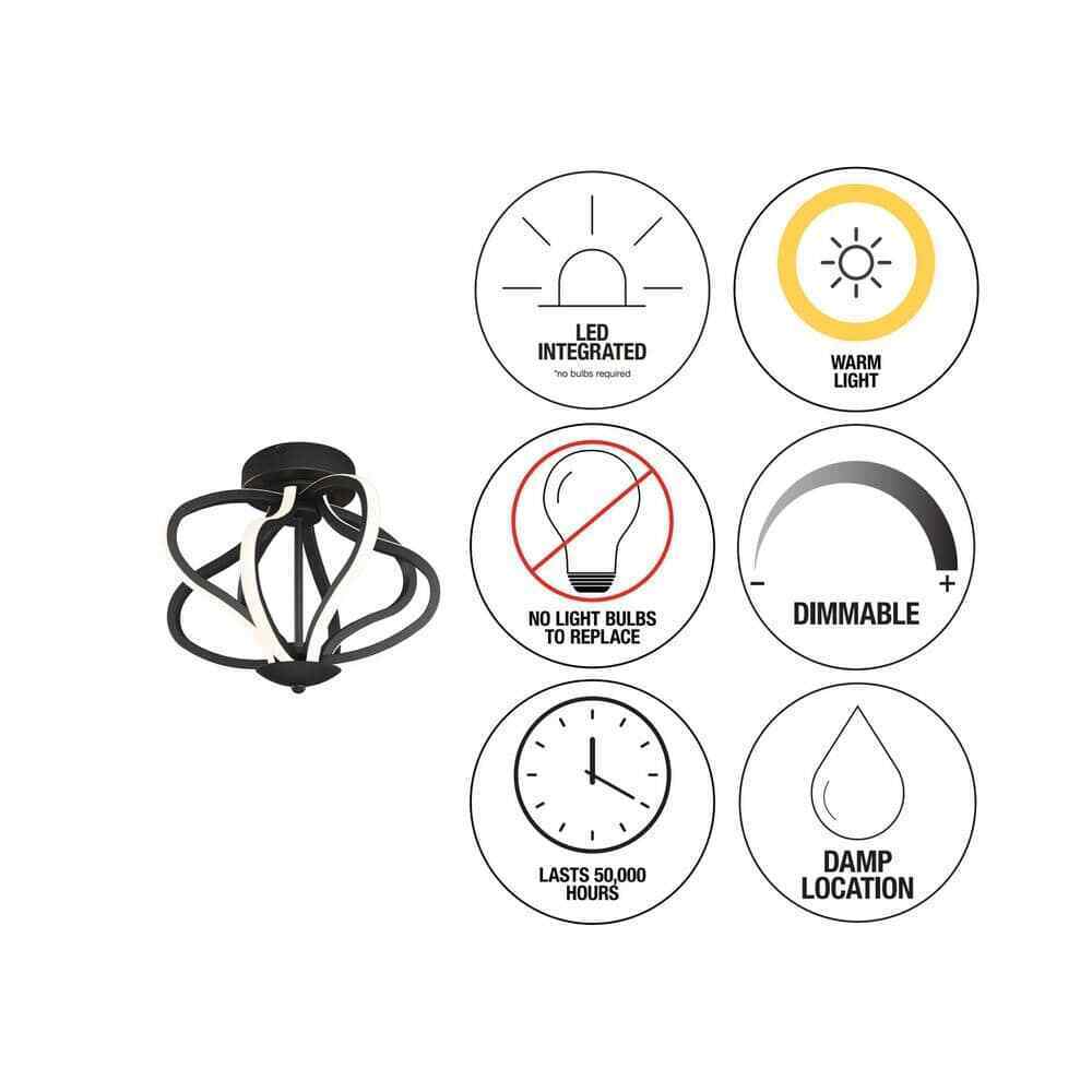 The Meridian Flush mount LED light fixture is out of this world. Designed to resemble the Earth and its meridian lines, it brings a new dimension to any contemporary setting with its Black finish and undulant composition featuring integrated LED lights. It's the lighting of choice for living rooms, dining rooms and bedrooms with an urban and slightly daring style. Easy to install, this LED pendant light requires no bulbs. It offers a brightness of 900 Lumens and a lifespan of 50,000-hours. Install an LED dimmer to adjust the intensity.- 900 Lumens