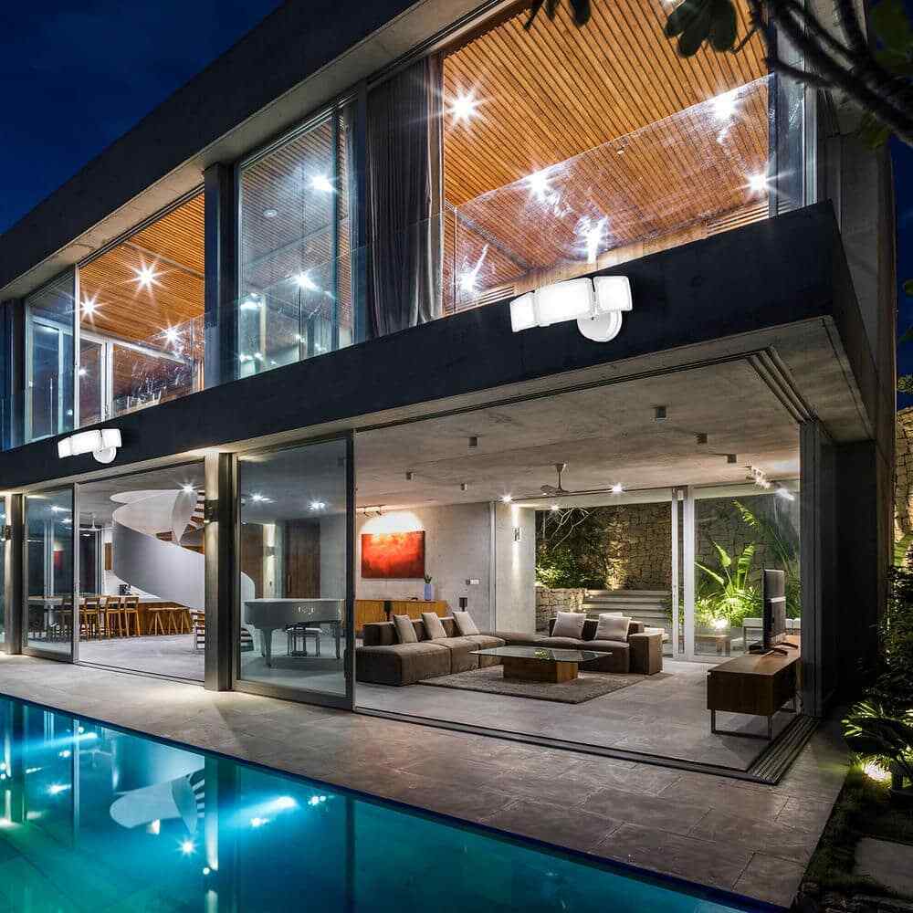 Designed with safety and convenience in mind, this 3 head outdoor security light illuminates your residential or commercial space with the flip of a switch. The 3 adjustable integrated LED light heads can be aimed up, down or side to side for extra coverage in even the darkest or most secluded areas with the brightness of 3800 Lumens at the low power of 40W in 5000k daylight white. With its ETL safety rating for wet locations, this durable security light can survive stormy weather. The weather resistant aluminum housing provides great heat dissipation to ensure use for up to 50,000-hours.- Bright LED light at 3800 Lumens, 40-Watt total