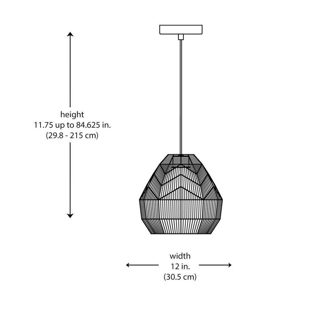 This natural woven pendant from Bel Air Lighting's Monteaux Collection is designed to suit a variety of home decor styles from coastal to bohemian. The pendant is a decorative hanging light that works well in dining areas, kitchens, bedrooms, office spaces, and more. The fixture is constructed of white-finished metal and includes a circular ceiling plate and a woven rope basket shade. The shade is dome shaped, open at the bottom, and allows light from the single bulb inside to stream out through the semi-open weave. The pendant body hangs from a matching white wire, offering height adjustability and sloped ceiling compatibility.- Coastal pendant with natural white rope shade