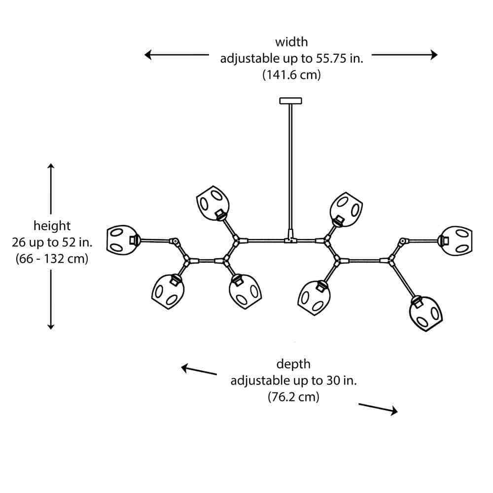 This midcentury-inspired sputnik pendant from Bel Air Lighting is designed to suit a variety of home decor styles from transitional to modern. The pendant is a decorative hanging light that works well in dining areas, kitchens, and foyer entrances. The fixture is constructed of black-finished metal and includes a circular ceiling plate and a series of eight moveable support arms that reach out in a starburst fashion to hold glass globe shades in place. The clear glass shades feature decorative dimple impressions, house a single light bulb each, and are open at the end for easy access to change the bulbs. Each arm can be adjusted for directional lighting, and to orient the fixture into a linear shape for use over a dining table or kitchen island. The pendant body hangs from matching black extension rods, of which multiples extras are included for an adjustable hanging height. Shop the collection for additional finishes and sizes.- Black finish adds contemporary appeal