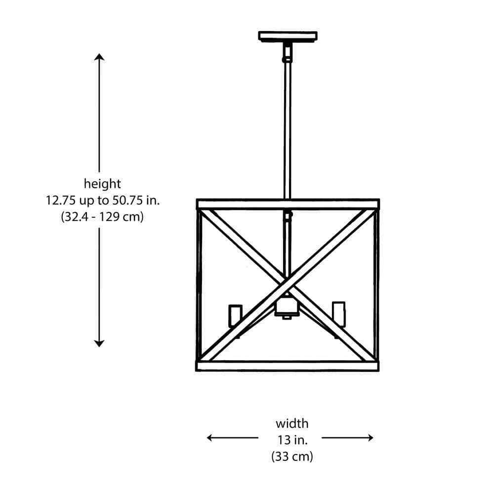 The Ackerman Collection from Bel Air exhibits transitional indoor lighting designed to suit a variety of home decor styles from industrial to modern. The Ackerman caged pendant is a decorative hanging light that works well in dining areas, kitchens, and foyer entrances. The fixture is constructed of an antique brass metal frame and includes a round ceiling plate for mounting and a bronze metal caged shade. The bronze cage offsets the metallic brass finish, highlighting the transitional design and adding a unique appeal to the piece. The square cage surrounds a cluster of four bulb sockets that are accessible through the open bottom and open criss-cross weave of the shade. The pendant body hangs from extension rods, of which multiple extra rods are included for an adjustable height. Shop the Ackerman Collection for additional finish options and coordinating interior lighting for the whole house.- Trendy two-toned bronze and antique brass finish