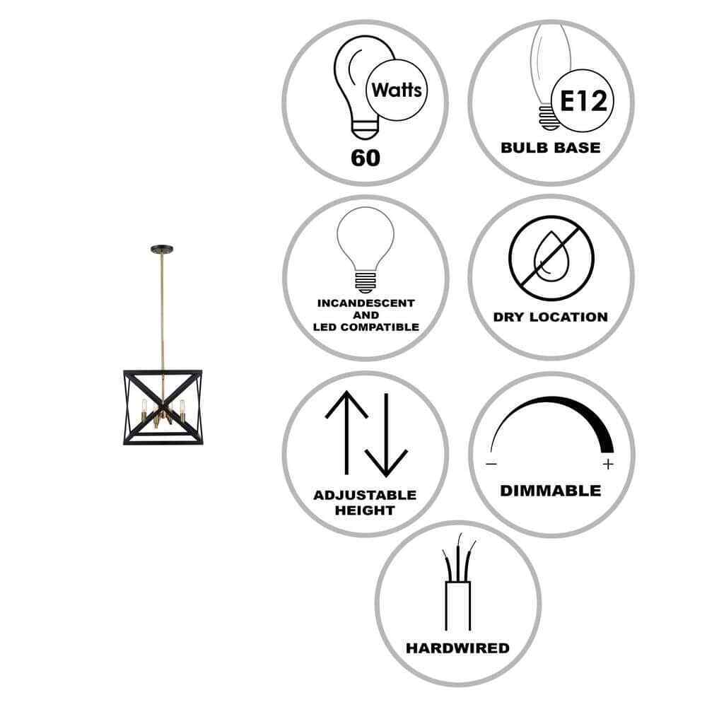 - Uses (4) candelabra E12 base 60-watt bulbs, not included