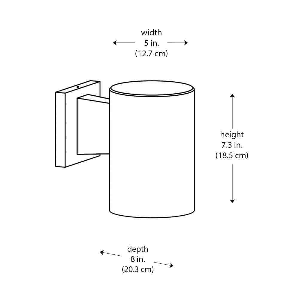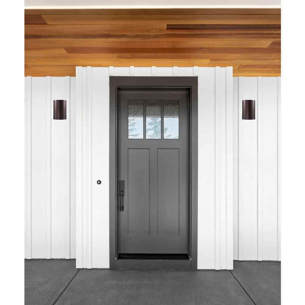 The Cali collection features modern outdoor wall lighting, designed to coordinate with a variety of exterior home decor types from traditional to contemporary. The Cali 1-light cylinder sconce is the smallest in the collection and is offered in a warm bronze finish. The fixture is open at the bottom to allow easy access to the single down light bulb, and to provide directional lighting below. The metal cylinder shade is attached to the wall with a matching square backplate. The understated, modern design of this outdoor wall light and its compact 7.3 inch tall size make it ideal for lighting up porches, exterior entryways, and smaller driveways.- Warm bronze finish will coordinate with existing exterior decor