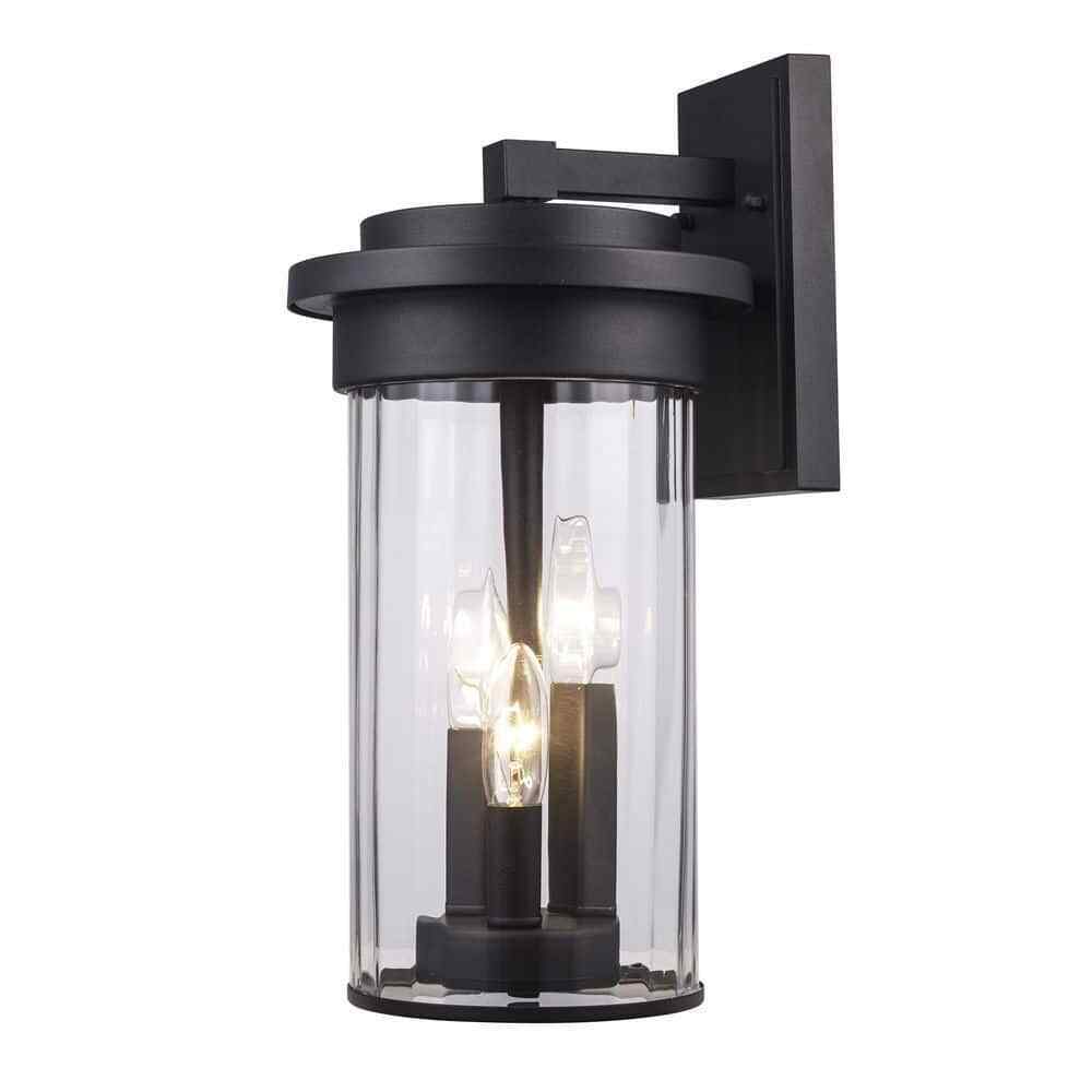 The Carmel Collection from Bel Air exhibits transitional outdoor lights that are ideal for adding area lighting to a variety of exterior living spaces. The Carmel medium-sized wall light is inspired by a lantern design and features a cylindrical frame and rectangular wall plate that attaches firmly to any exterior wall. The fixture is constructed of metal and a clear glass shade with a decorative fluted design. The sconce is finished in black to coordinate with a variety of exterior home styles and with existing black-finished fixtures and hardware. Install the Carmel wall light on either side of a garage door to light up your home's driveway, near porch entryways and access points or along outdoor pathways and steps. Shop the Carmel collection for coordinating hanging and post top fixtures.- Black finish is weather resistant