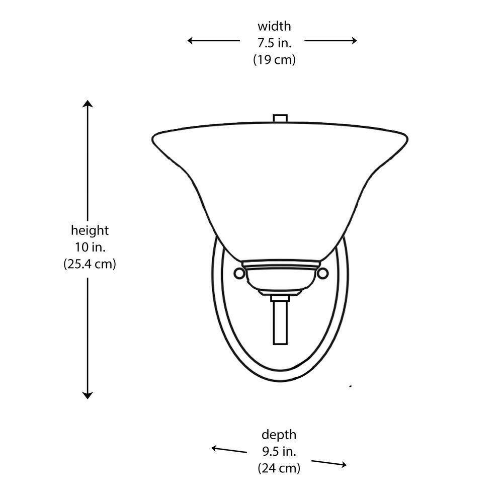 The Hollyslope Collection from Bel Air Lighting exhibits contemporary vanity lighting, designed to coordinate with a variety of bathroom and powder room decor styles from traditional to modern. The Hollyslope single light wall sconce is offered in a warm, rubbed oil bronze finish that will blend seamlessly with existing hardware. The distinctive, marbleized glass bell-shaped shade adds contemporary charm to your home while providing ample task lighting where needed most. The shade is open at the bottom to provide easy access to the 60-watt bulb inside, and is held in place by a decorative wave arm and matching oval wall plate. The Hollyslope Collection is reversible, and can be mounted upwards or downwards for a customized look and directional lighting.- Uses (1) medium base 60-watt bulb, not included