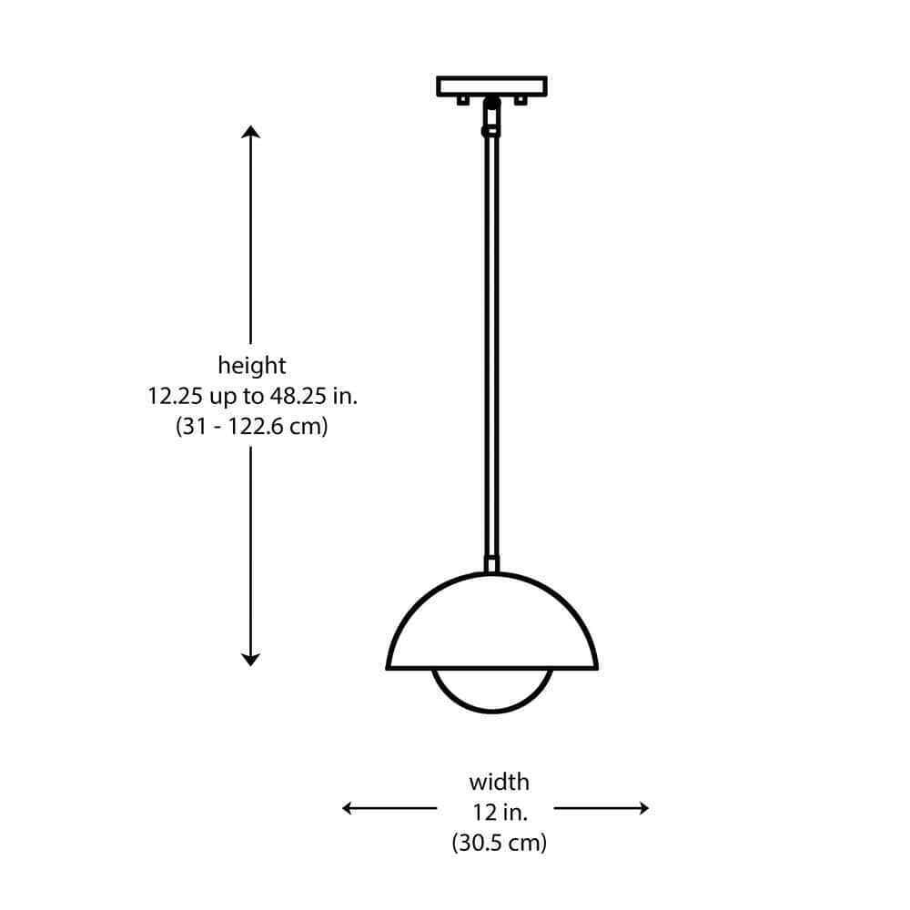 This modern pendant from Bel Air Lighting's Maureen Collection is designed to suit a variety of home decor styles from transitional to contemporary. The pendant is a decorative hanging light that works well in dining areas, kitchens, and foyer entrances. Use as a single unit over a dining room table, or install as a set over a linear kitchen island or bar table for additional illumination in larger spaces. The fixture includes a black metal dome shaped outer shade with an inner white opal glass globe shade. The glass globe is fully enclosed, houses a single light bulb inside, and can easily be removed to change the bulb. The pendant body hangs from extension rods, of which multiple extra rods are included for an adjustable height.- Metal dome shade with white opal glass globe shade