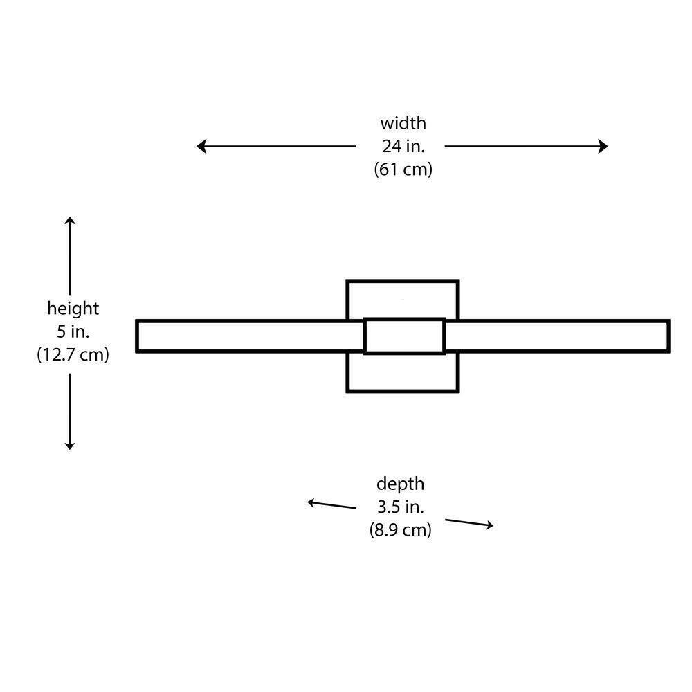 The Saavy Collection from Bel Air Lighting exhibits modern bathroom lights, designed to coordinate well with a variety of interior decor styles from transitional to contemporary. The Saavy 24-inch vanity fixture is a decorative wall light that works well in bathrooms and powder rooms. Use as a single unit in smaller spaces or use as a set over a double sink or vanity mirror in larger areas. The fixture is constructed of brushed nickel finished metal and includes a square wall plate and white acrylic elongated rectangular shade. The frosted acrylic shade keeps the unit lightweight and allows the LED lights to cast a soft ambient light over a wide area. The integrated LED design is low maintenance, as you will never need to replace bulbs for the life of the fixture. The LED module emits 1500 Lumens of warm white light, comparable to a 100-Watt incandescent light bulb and can be dimmed. Mount horizontally or vertically for a customized look.- Integrated LED is low maintenance, no need to change bulbs