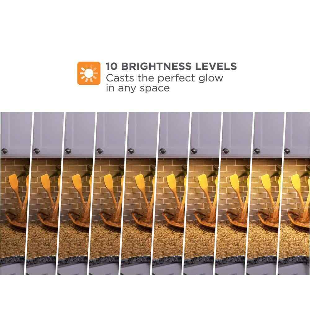 - 10 brightness levels with memory function for bright task lighting, soft accent lighting and everything in between