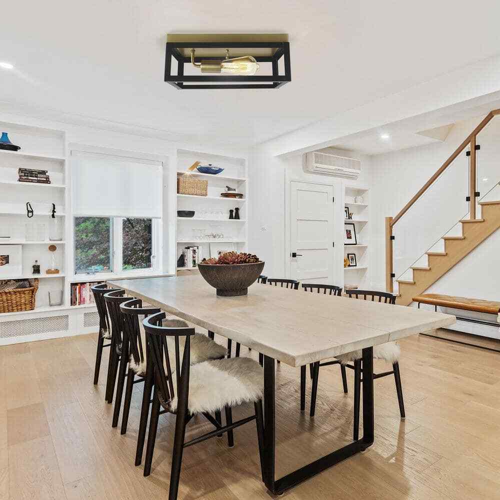 1-Light Flush Mount comes with all-metal square structure frame to create a unique industrial retro feel. Using iron material and anti-rust finish can be more stable and durable. Ideal for any indoor or outdoor place. You can install it in your room, bedroom, study, balcony, corridor.- 1-light semi flush mount comes with smooth lines and rectangular shapes, it's classical geometric beauty adds retro flavor to your space