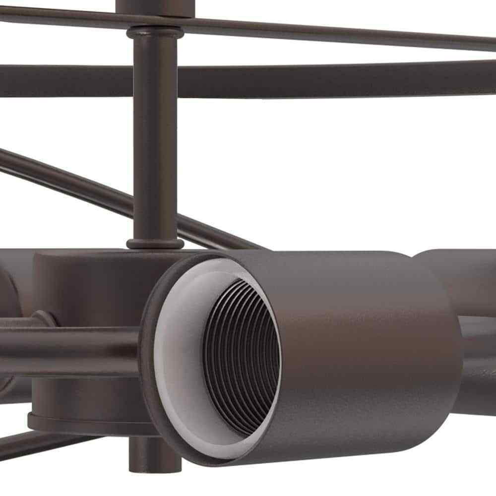 This rustic 4-light semi-flush mount has a 6" height that's ideal for rooms with low ceilings. Made from steel, it has a drum cage silhouette with X-shaped accents and an antique brass hue that makes it right at home in rustic and industrial aesthetics. Inside, a central rod supports three sockets that suit standard-size bulbs of up to 60W (sold separately), which create a bright, ambient glow for your living room, entryway, or hall.- The protective Oil rubbed bronze finish features a modern rustic style with a cage-style design that complements any decor.
