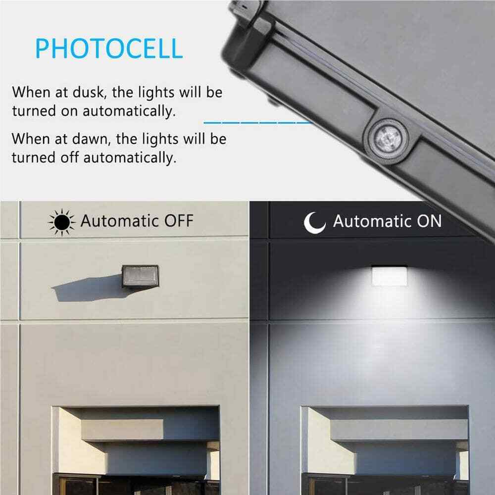 - Dusk to dawn outdoor light: the commercial outdoor security light is engineered with photocell technology, making this fixture a dusk to dawn outdoor light, the photocell sensor automatically turns on at sunset and off at sunrise