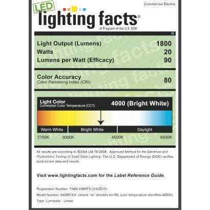 Commercial Electric 2ft. LED Strip Light Fixture is designed to replace an outdated fluorescent light with an energy-efficient integrated LED fixture. Our versatile strip light is ideal for narrow linear applications and for a larger footprint, connect by continuous mount using the 5 large knockouts on the fixture body. With its superior long-lasting light engine, this strip light fixture ensures maintenance free service for up to 50,000 hours. Ideal for work bench, tool bench, garage, storage room, utility room, closet, pantry, bonus room, craft room and more.- 1800 Lumens of brightness using only 20-Watts of energy