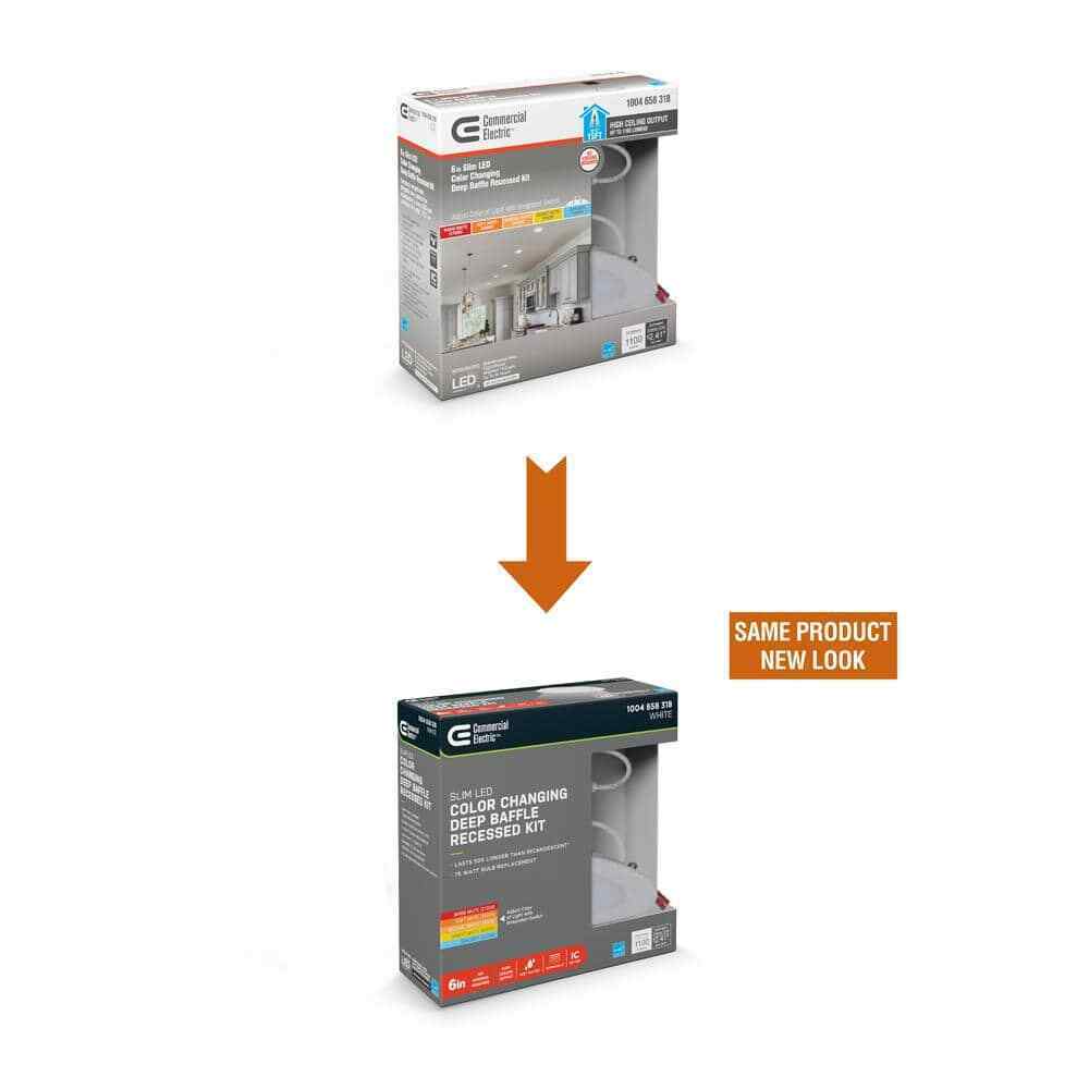The Commercial Electric Color Selectable Recessed Lighting Kits are the recessed lights of the future. Not only is each fixture is designed specifically for small spaces where height clearance is limited such as beams or ductwork, you can change the color temperature with a flick of a button. The integrated color changing switch is located on the cable so you can choose between a 2700, 3000, 3500, 4000 or 5000 Kelvin temperature to best suit your needs. 2700 or 3000 Kelvin is perfect for relaxing, 3500 or 4000 Kelvin is the ideal choice for everyday affairs and 5000 Kelvin is great for task lighting in a basement, hallway or work area. ENERGY STAR certified and IC rated for direct contact with insulation, these lights won't overheat, do not require a bulky can and will last for-years to come - 50000-hours or approximately 34-years if used for 4-hours per day to be exact. Wet rated and certified airtight, this 6 in. kit is perfect for your bathroom, drop ceilings, outdoor soffits, larger spaces and all general lighting applications. The smooth baffle is designed to absorb excess light and reduce glare significantly - quintessential for the glasses wearers in your home.- Selectable color temperature: with the flick of a button, choose the color temperature that works best for your space - 2700 to 3000 kelvin is perfect for relaxing, 3500 to 4000 kelvin is the ideal choice for everyday affairs and 5000 kelvin is great for task lighting in a basement, hallway or work area