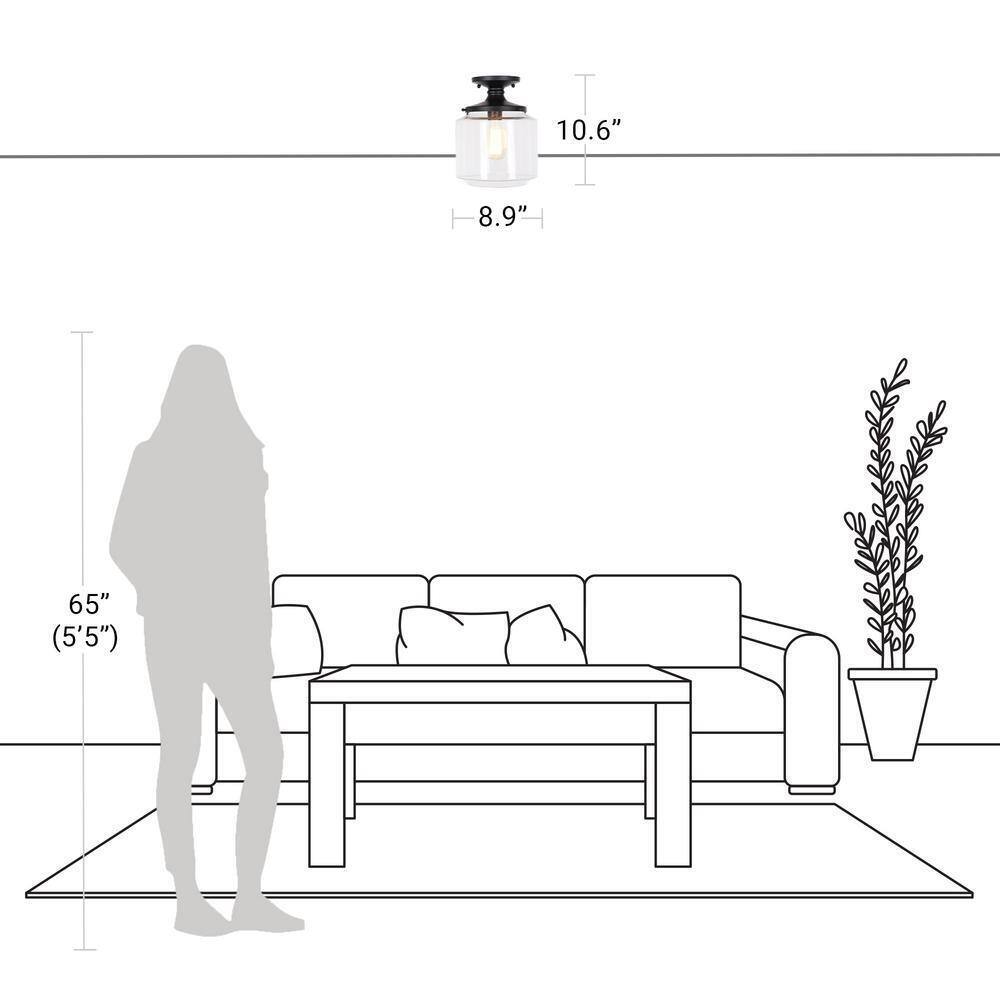 A true classic never goes out of style. This Mid-Century Modern Flushmount with Satin Black hardware and art deco-style glass shade delivers brilliant lighting and design. The enclosed clear glass shade brightly illuminates and the fixture's size and damp-rating make it ideal for various spaces. Add light and timeless style to an entryway, bathroom, kitchen, closet, home office or dining nook. Dimmable when used with wall dimmer switch (not included). This fixture is hardwired and easy to install and uses any one (1) type-A E26 bulb. A vintage-style clear bulb with exposed filament is recommended for a stylishly classic, vintage or industrial look. Fixture is shown in pictures with an Edison style ST64 E26 light bulb (light bulb is not included). Includes all mounting hardware and easy-to-follow instructions.- Mid-century modern flushmont ceiling light features art deco style enclosed glass dome shade and metal hardware in satin black finish