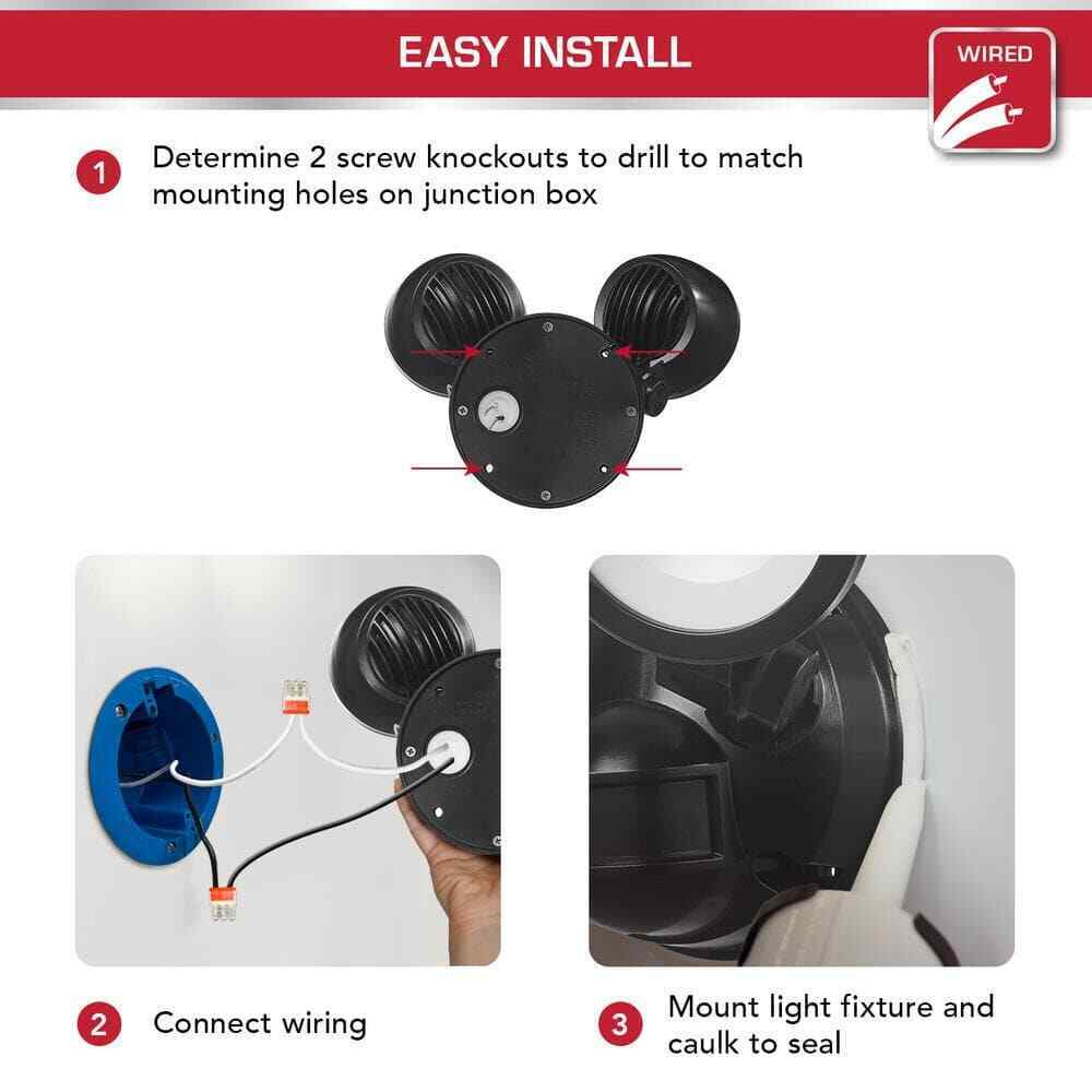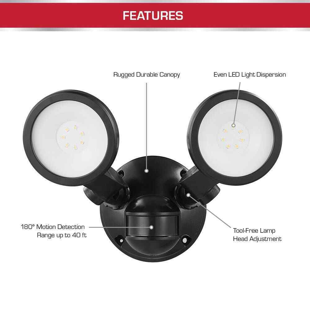 Discover the pinnacle of security with the DEFIANT Motion Activated Adjustable Lamp Head Flood Light Security Light! Motion activated from up to 40 feet, with a 180° detection zone, your home will never be more secure. Need to customize the light coverage No problem! Easily adjust the lamp heads up, down, or side to side for your unique space. With 1000 lumens and a daylight white 4000 Kelvin color temperature, experience a bright white light that enhances security all night long, providing a feeling of safety for seconds at a time. Installation is a breeze with the included mounting hardware, designed for quick and easy wall mount installation.- MOTION ACTIVATED: Up to 40 feet with 180° detection zone, your house will never be so secure