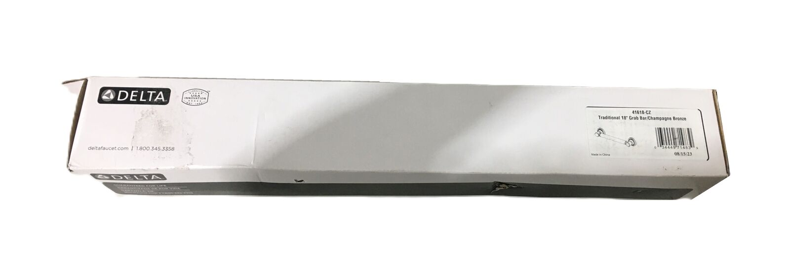 The Delta 18 in. Traditional Decorative ADA Grab Bar offers both safety and aesthetic appeal for any bathroom. Finished in stylish Champagne Bronze, it seamlessly coordinates with your existing fixtures. Featuring sturdy die-cast zinc mounts and a stainless steel bar, it provides reliable support and leverage for everyone, regardless of age or ability. It can support a weight of up to 500 lbs, exceeding ADA requirements. The versatile design allows for horizontal, vertical, or angled installations, making it adaptable to your specific needs. Easy installation is assured with the included instructions and wood screws, and for situations without studs, a grab bar wall anchor is provided. The concealed screw design with snap-over cover presents a clean look, enhancing your bathroom's elegance while ensuring safety and independence.We are not authorized sellers and/or resellers of Delta products and are not associated with Delta in any way. This item has not been subject to Delta's quality control program, but has been thoroughly inspected by our staff and appears to be in unused, uninstalled, new condition. This item has no warranty provided by Delta, but we provide free returns or replacements within 30-days of purchase, should any issue arise.