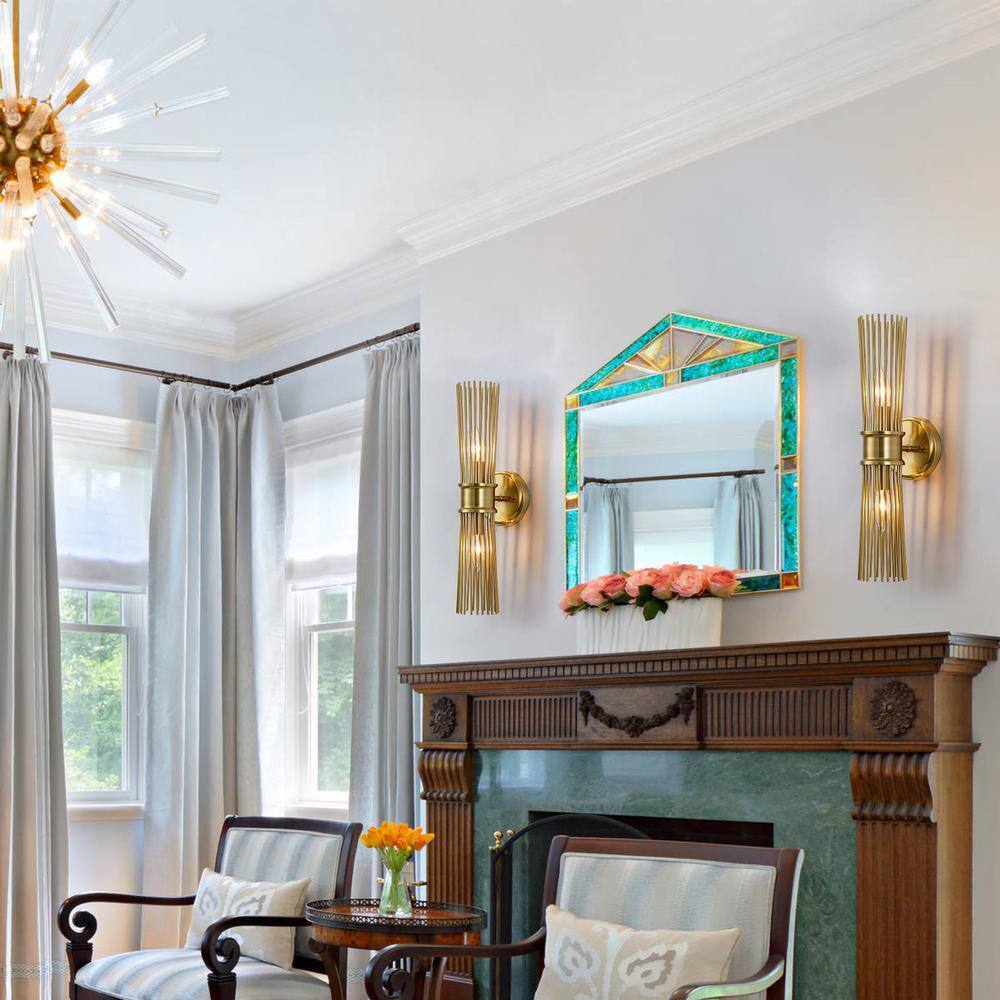 A gold starburst wall sconce vanity light, sunburst wall lamp, and vintage mid-century look. The unique design adds a different warm atmosphere to the interior. Also as an art to display.- 2 installation modes: can be mounted vertically or horizontally