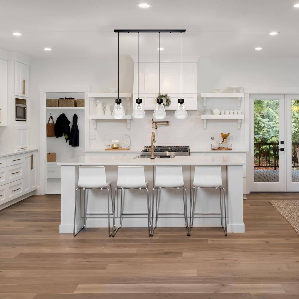 The chic and tastefully simple Montey multi four light pendant by Eglo features a sleek black finish and a trendsetting clear glass shade making it the perfect chioce for lighting your home. The black finish and clear glass offer a clean but distinguished look. The canopy provides an easy installation with the option of hanging adjustment.- Takes 4 A19 60-Watt bulb (not included)