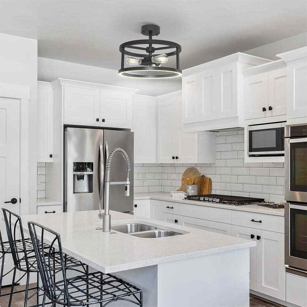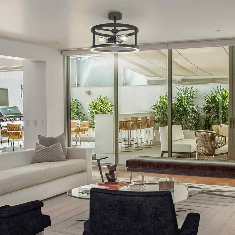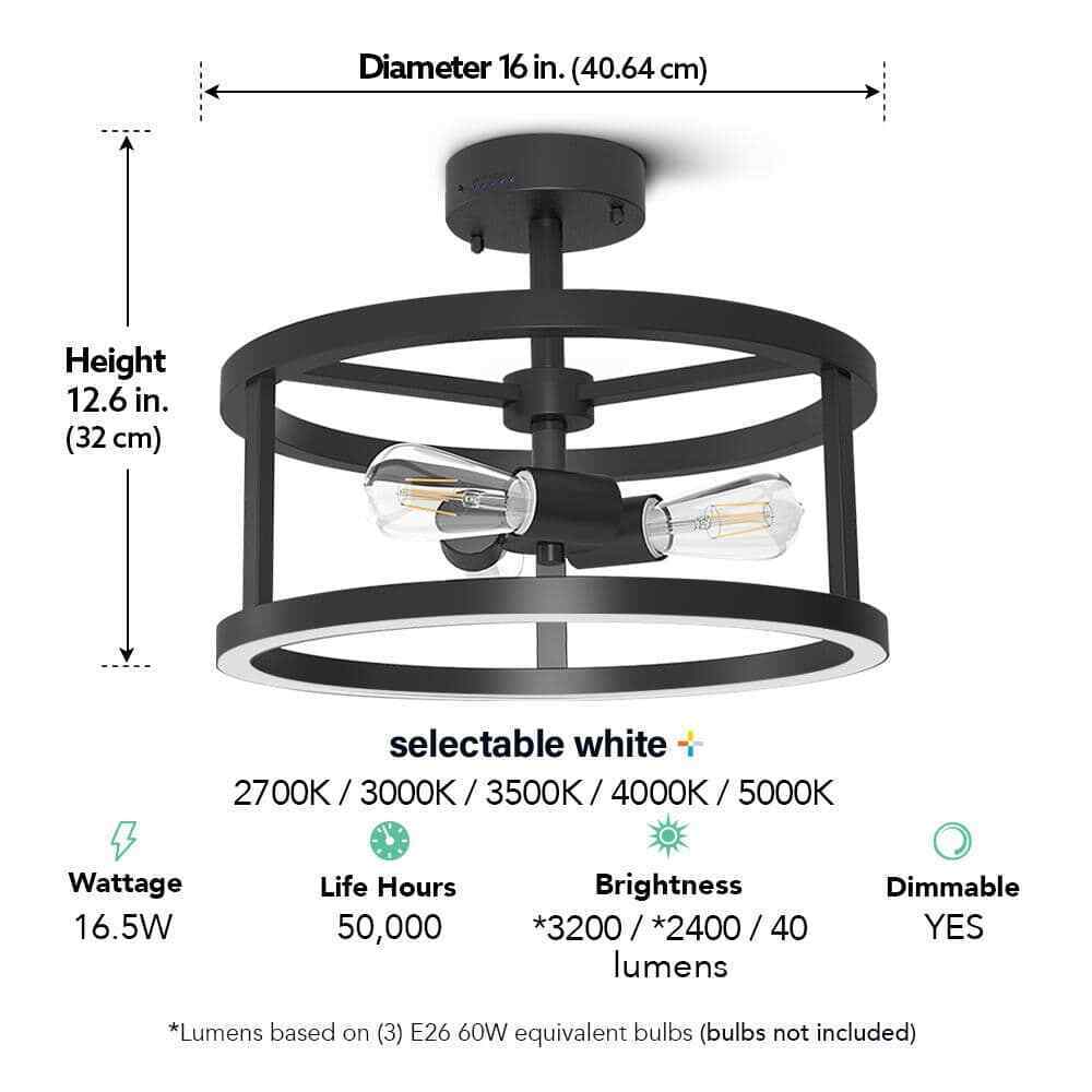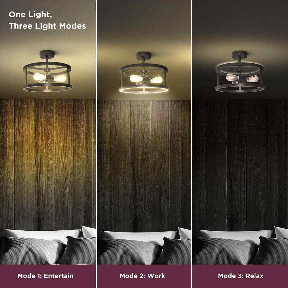 A versatile light fixture with three light modes, perfect for multi-use rooms and accommodating various activities in the same room throughout the day. The Feit Electric Katalyst Collection LED semi-flush mount decorative light fixture transforms the mood of shared-use spaces whenever you need it. Combining a traditional aesthetic with modern energy-saving LED technology, the sleek lines, and matte black finish perfectly complements contemporary or traditional home decor styles. Add your favorite separately sold Medium E26 base light bulbs and let the fixture do the rest. Choose from three light mode options depending on the activity. Entertain guests by switching ON the bulbs using area light mode. The area light illuminates your space with 2400 lumens based on three 800 lumen bulbs. Get work done by lighting the area light and downlight together with 3200 combined lumens. You can even tailor the mood of the downlight by adjusting between Soft White (2700K), Bright White (3000K), Neutral White (3500K), Cool White (4000K), or Daylight (5000K). Wind down the day by turning ON the night up-light and switching to 40 lumens of soothing warm white light that makes the room cozier. Further customize your lighting by dimming the area light and area light with downlight using an existing dimmer. Say hello to the optimal light for work, play, relaxing, or entertaining with the Katalyst Collection LED light fixture. The perfect transformative lighting fixture for modern households.- Get three lighting modes with one versatile light fixture: Model 1: Entertain (bulbs only); Mode 2: Work (bulbs with downlight), and Mode 3: Relax (night up-light)