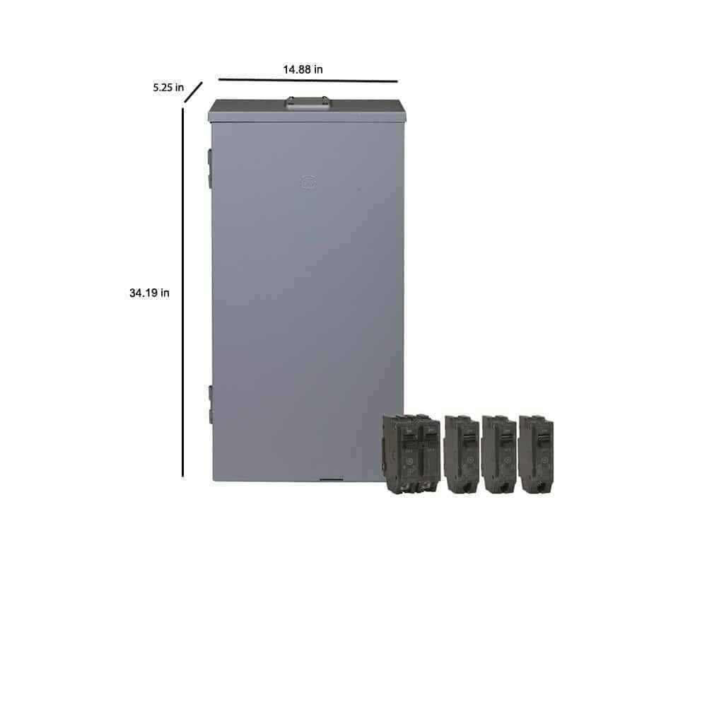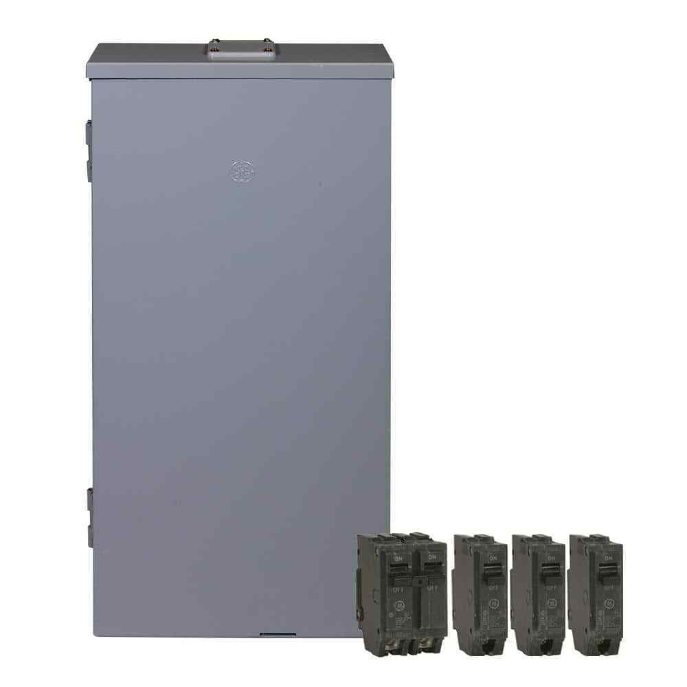 The GE 200 Amp 32-Space 64-Circuit Main Breaker Outdoor Load Center Contractor Kit is pre-packaged with a selection of circuit breakers. The UL-listed load center has holes rated 100% split neutral on each side that are compatible with #14-4 wire. The breaker box is a single-phase, 3-wire unit with a factory-installed main breaker. The center is designed and built for faster installation and a more dependable performance. This unit is compatible with GFCIs, AFCIs, Dual Function and standard circuit breakers.- Features a copper bus for increased conductivity