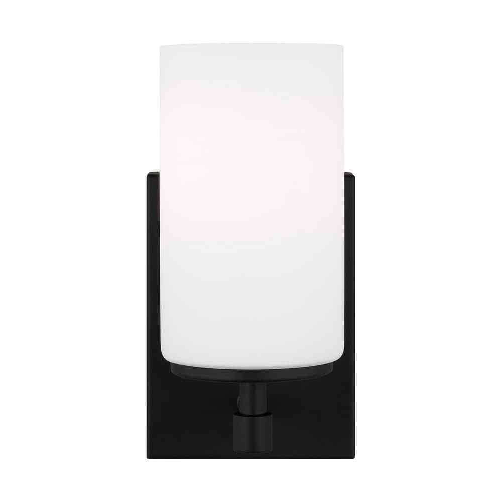 The Alturas one light wall sconce in Midnight Black provides abundant light for your bath vanity, while adding a layer of today's style to your interior design. The silhouette of the modern Alturas lighting collection by features an interlocking, spherical steel frame, which harkens back to the Unisphere constructed for the 1964 New York World's Fair. The minimalist Alturas Collection draws the eye to the soft, warm glow of the light emitted from the cylindrical Satin Etched glass shades. The full assortment includes three-, five- and nine-light chandeliers, a one-light mini pendant, a three-light pendant, a two-light semi flush which is convertible into a pendant, and one-, two-, three- and four-light bath fixtures. All fixtures are offered in Brushed Oil Rubbed Bronze, Brushed Nickel, Midnight Black and Satin Brass finishes, the bath fixtures are also offered in Chrome finish. Incandescent and ENERGY STAR-qualified LED lamping are available; all fixtures are California Title 24 compliant.- Featured in the decorative Alturas collection