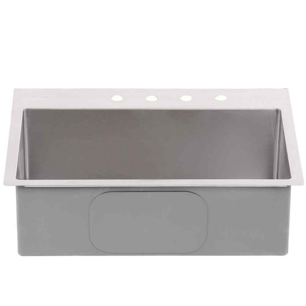 - Fashioned with 4 predrilled fixture holes for installation of a faucet, sprayer, soap dispenser or other accessories (not included)