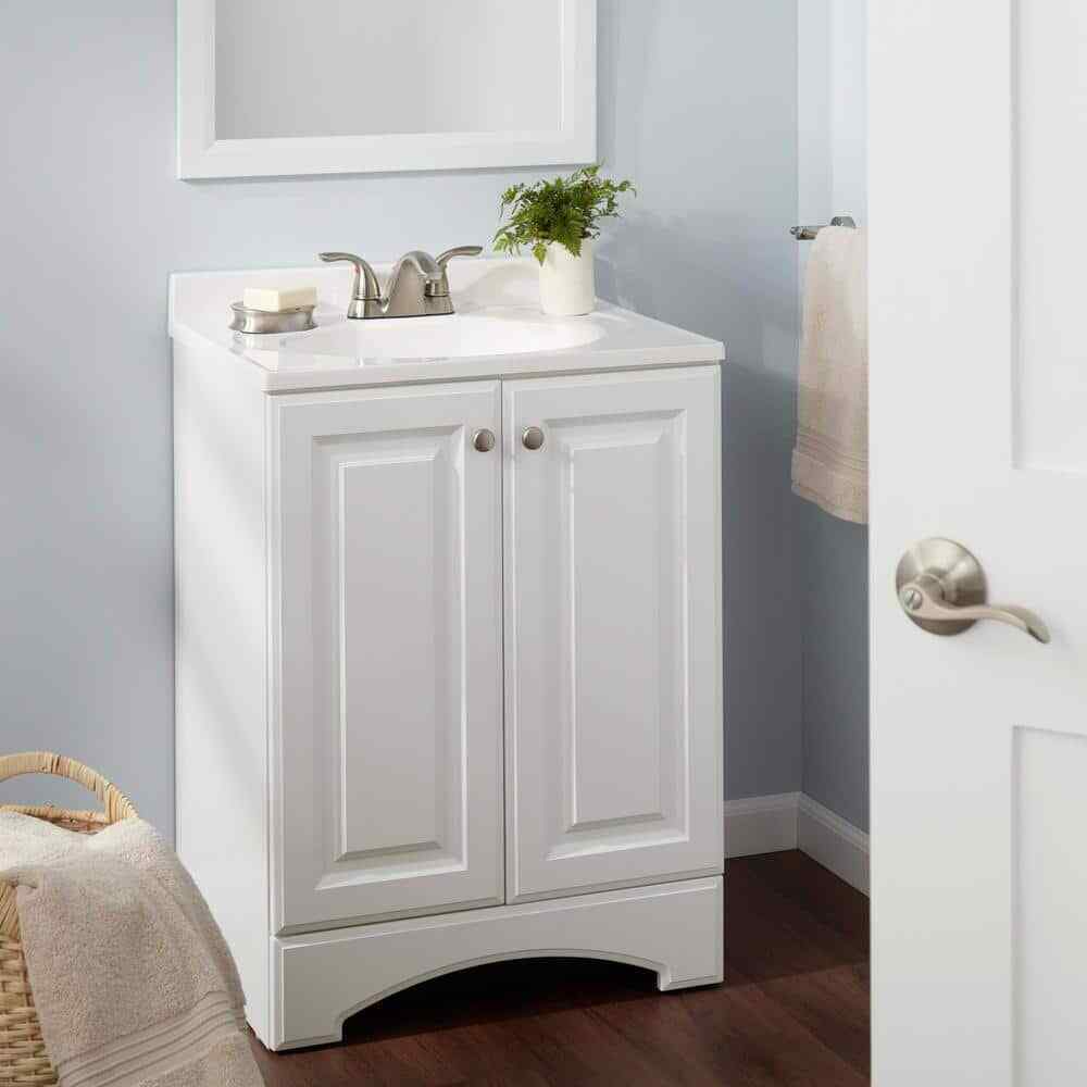 The Glacier Bay Builders 4 in. Centerset 2-Handle Low-Arc Bathroom Faucet in Brushed Nickel has a sleek and shapely, curved design that will complement a wide variety of bathroom decor. WaterSense certified, this faucet has a 1.2 GPM water flow rate to help conserve water and ceramic disc cartridges to help prevent drips. The 2-handle lever design allows you to easily turn hot and cold water on and off. Durable with a brushed nickel finish, this faucet is easy to clean and easy to install with a 1/2 in. connection size and deck-plate mount. it also features the Glacier Bay exclusive ClickInstall drain assembly for quick and simple installation. Pair with other pieces from the Builders Collection for a complete and polished look.- Brushed nickel finish uses a physical vapor deposition process that ensures the finish is a durable lifetime finish