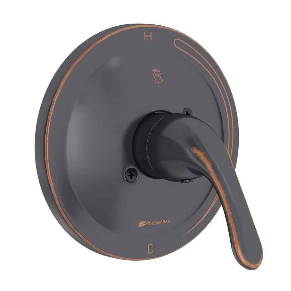 The Builders 1-Handle Tub and Shower Faucet from Glacier Bay offers smooth, classic styling ideal for a wide range of bathroom decor. Featuring an elegant bronze finish, the decorative single-handle lever, spout and showerhead are easy to operate, while the pressure balance system helps protect against scalding and cold shock for an enjoyable shower every time. The showerhead is WaterSense certified with a 1.8 GPM flow rate. The ceramic disc cartridge ensures drip-free operation. Coordinate with other pieces from the Builders series to create a stylish theme throughout your bathroom.- Ceramic disc cartridge prevents leaks and drips