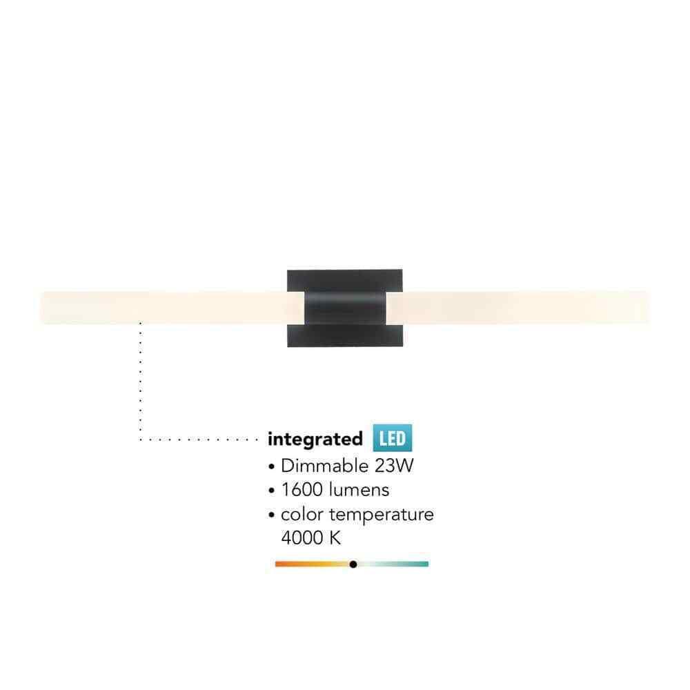 Statement lighting doesn't always mean being the center of attention. Minimalist modern wall sconce lighting unobtrusively hugs the wall but can be just as striking as center-stage vanity lights. There are many different versions of spectacular wall lights, but n 1 stand out as much as the Edinburgh LED Integrated Vanity Light by Globe Electric. Sitting at 36- in. wide the matte black finish adds a modern flair to your room while the frosted acrylic shades soften the entire look. With an integrated LED light, you'll never have to change a bulb again and it's dimmable, so you'll always have the right amount of light for any situation. Just install and enjoy,- Minimalist: the matte black color and clean silhouette of the edinburgh led integrated vanity light are the epitome of modern minimalist design that complements any existing decor