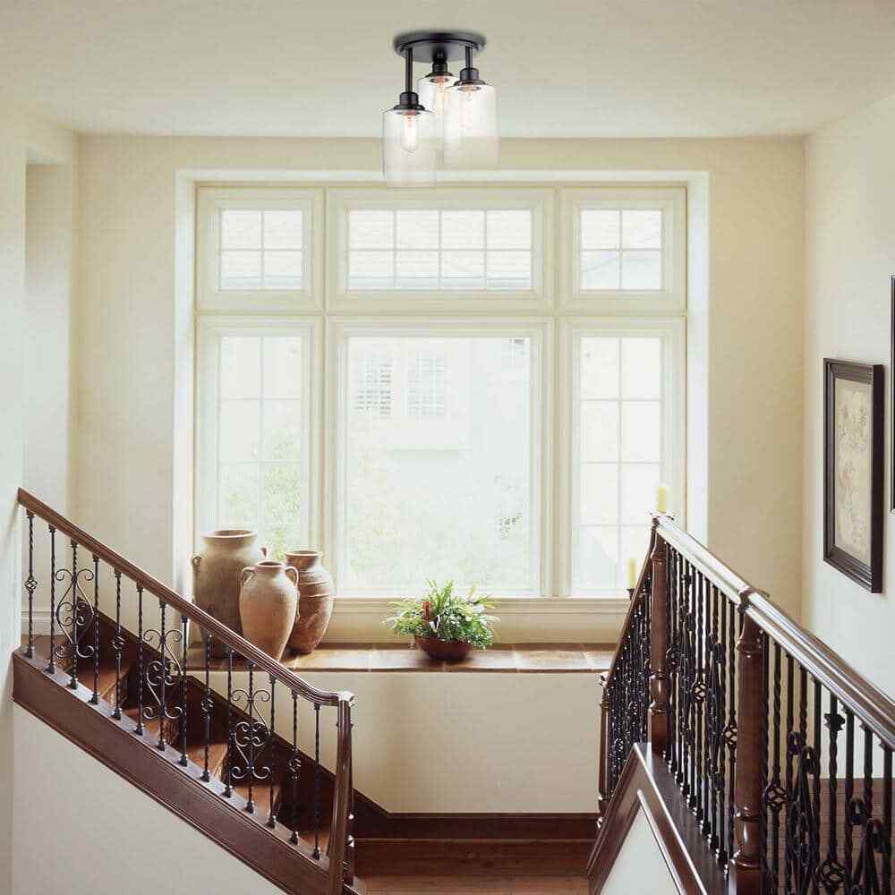 Globe Electric's Annecy Semi-Flush Mount Ceiling Light is a stunning light that would be great for an entranceway or main hallway, so it can be seen when walking into your home. The matte black finish and functional design creates an inviting visual space that's the epitome of modern industrial style. The clear glass lets you update your fixture at any time simply by changing the bulb. Try a vintage Edison bulb for an industrial look or a designer bulb for a more luxe design.- modern industrial: the matte black finish and clear glass shades of the annecy ceiling light combine to create a modern industrial design ideal for every room in your home