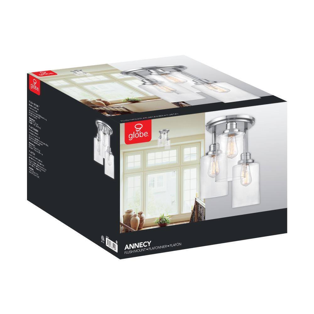 Globe Electric's Annecy Semi-Flush Mount Ceiling Light is a stunning light that would be great for an entranceway or main hallway, so it can be seen when walking into your home. The brushed steel finish and functional design creates an inviting visual space that is the epitome of contemporary industrial design. The clear glass lets you update your fixture at any time simply by changing the bulb. Try a vintage Edison bulb for an industrial look or a designer bulb for a more luxe design.- Contemporary industrial: brushed steel, clear glass - the perfect blend for contemporary industrial design
