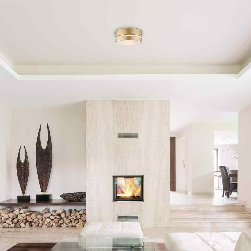 Statement lighting doesn't always mean being the center of attention. Minimalist modern flush mount lighting unobtrusively hugs the ceiling but can be just as striking as center-stage chandeliers and pendants. There are many different versions of spectacular ceiling lights but none stand out as much as the Novogratz x Globe Aurora Flush Mount Ceiling Light. With a modern Smithfield design - a grand yet shallow rounded body - this flush mount produces a halo of filtered light that is perfect for an entryway or bedroom. The soft gold finish adds a playful glam flair to your space yet the frosted shade softens the entire look. Decorate with the Novogratz and Globe Electric - lighting made easy.- Playful glam: drawing inspiration from the traditional glam trend, this 2-light flush mount ceiling light has clean simple lines and a stunning soft gold finish that adds a streamlined elegant appeal to any decor