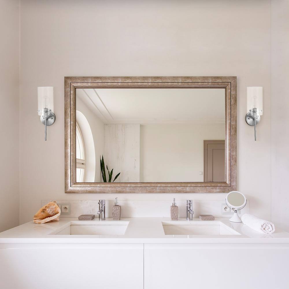 With the Cusco 1-Light Wall Sconce, a vintage design is mixed with industrial and contemporary elements creating a bold Industrial Luxe design. Within the glass shades, an exposed bulb sits on a gorgeous metal-mesh textured socket. This texture can be seen from across the room to create the perfect statement light with expert visual appeal. Check out the other items in the Cusco collection - with a chandelier, a semi-flush mount ceiling light and a vanity light you can decorate your whole home with one gorgeous style.- Industrial luxe: a vintage design is mixed with industrial and contemporary elements creating a bold Industrial Luxe design