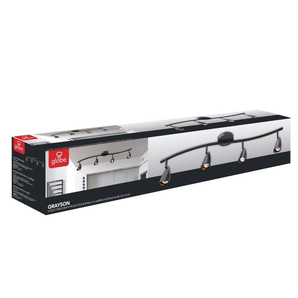 Upscale industrial design and neutral finishes are the backbone of the Grayson Track Lighting Collection by Globe Electric. Each piece boasts argon track heads that are adjustable so you can create lighting ambiance perfect for every room. The S-shape design of the matte black 4-light track light brings a new look to a classic design and is ideal for use in kitchens, bedrooms, living rooms, hallways and dining rooms. Try combining different pieces of the Grayson Collection to make your home feel like a swanky loft or an art gallery.- Upscale industrial style: a matte black finish, clean shapes and argon track heads emphasize ever-changing industrial design creating a unique upscale industrial style perfect for all decor types