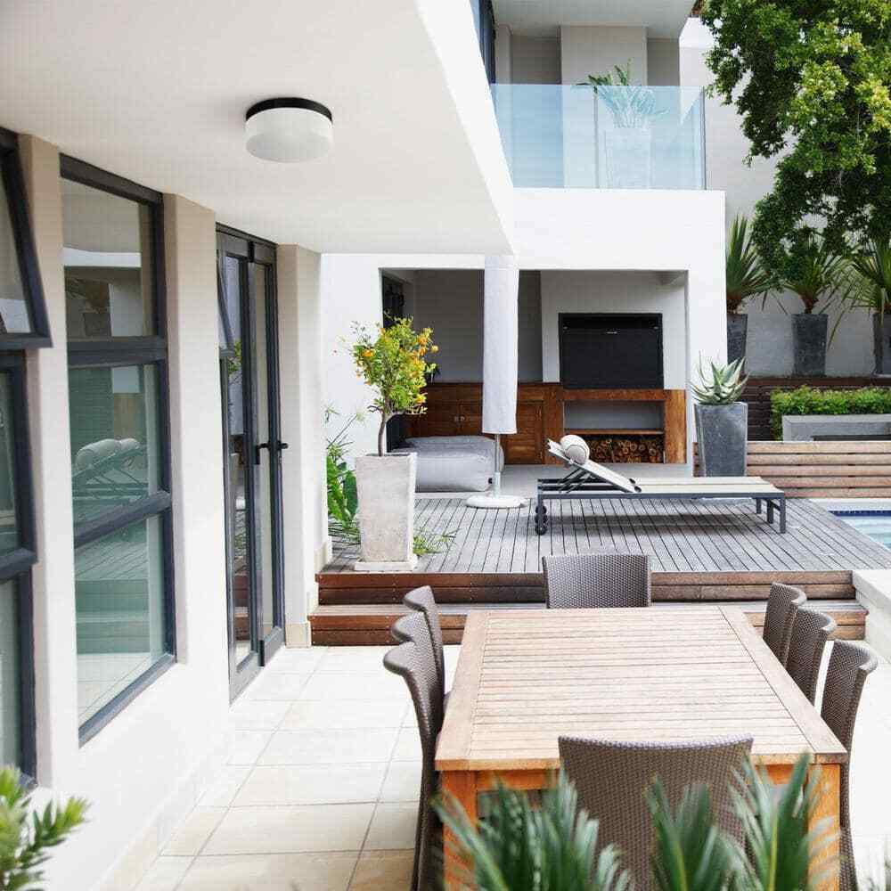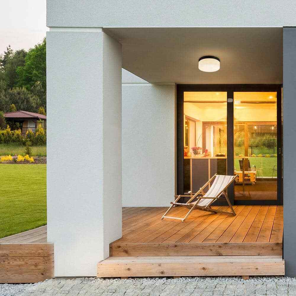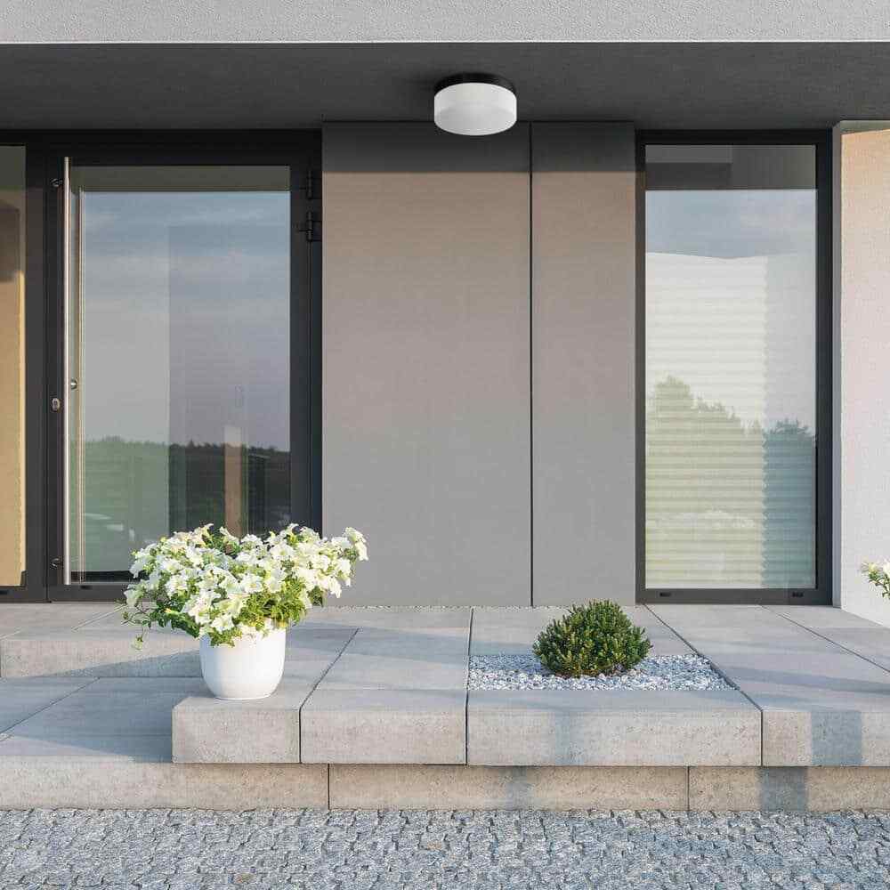 With a frosted glass shade, a round body and 23-Watt integrated LED, the Mark Outdoor Flush Mount Ceiling Light is the ideal light for all your lighting needs, both inside and outside your home. A frosted glass shade diffuses the bright 2000 Lumens light and illumines your space with a warm but bright glow. A modern round shape and black finish complete the modern design and the minimalist nature is complementary to all decor styles so you can place it in any room.- Modern: with subtle detail and simple lines, the Mark outdoor flush mount ceiling light offers modern design with minimalist style for outside and inside your home