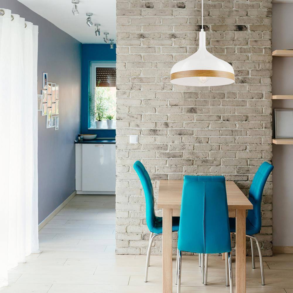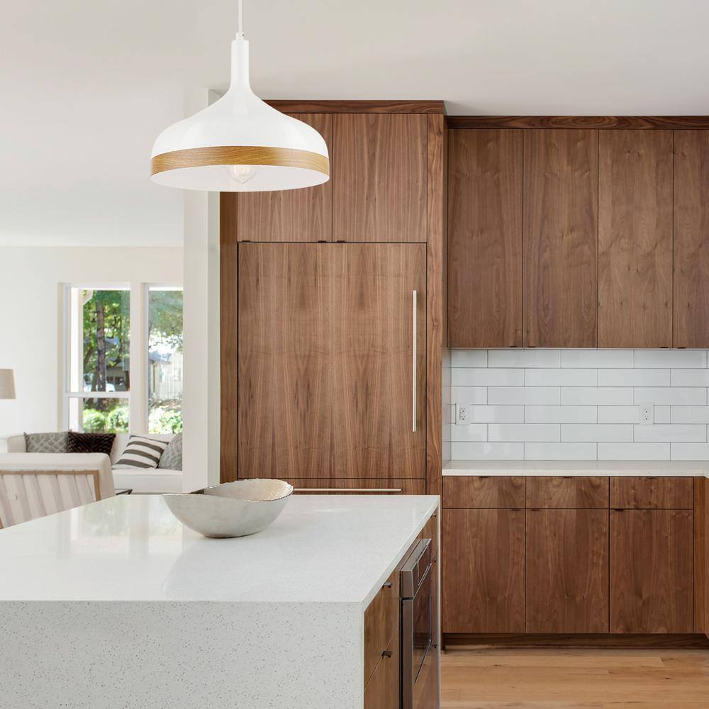 - LIGHT YOUR HOME IN STYLE: a white finish and faux wood accent elevates this Pendant Light from a classic design to a gorgeous statement piece that will brighten your space for years to come