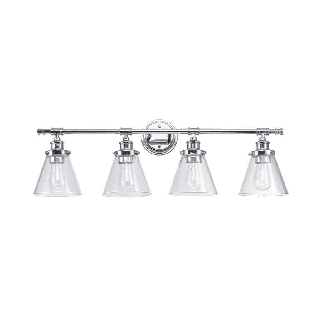 The Parker 4-Light Vanity Light utilizes an industrial pipe look and a modern finish to create a put together refined vintage design that complements most decor styles. The chrome finish and clear glass shades bring a refined vintage feel to any space and perfectly showcase a bulb of your choice. With a variety of different medium-based vintage Edison and designer bulbs to choose from, Globe Electric allows you to customize this fixture to suit your individual taste. Couple this with a compatible dimmer switch to create the perfect atmosphere for any mood you're in (dimmer switch not included). Update and modernize your bathroom or add this 4-light vanity light to your kitchen or bedroom to create a nice little sitting nook.- Vintage refined design: with a clean, simple, updated vintage design, this vanity light will modernize any bathroom, bedroom or kitchen decor