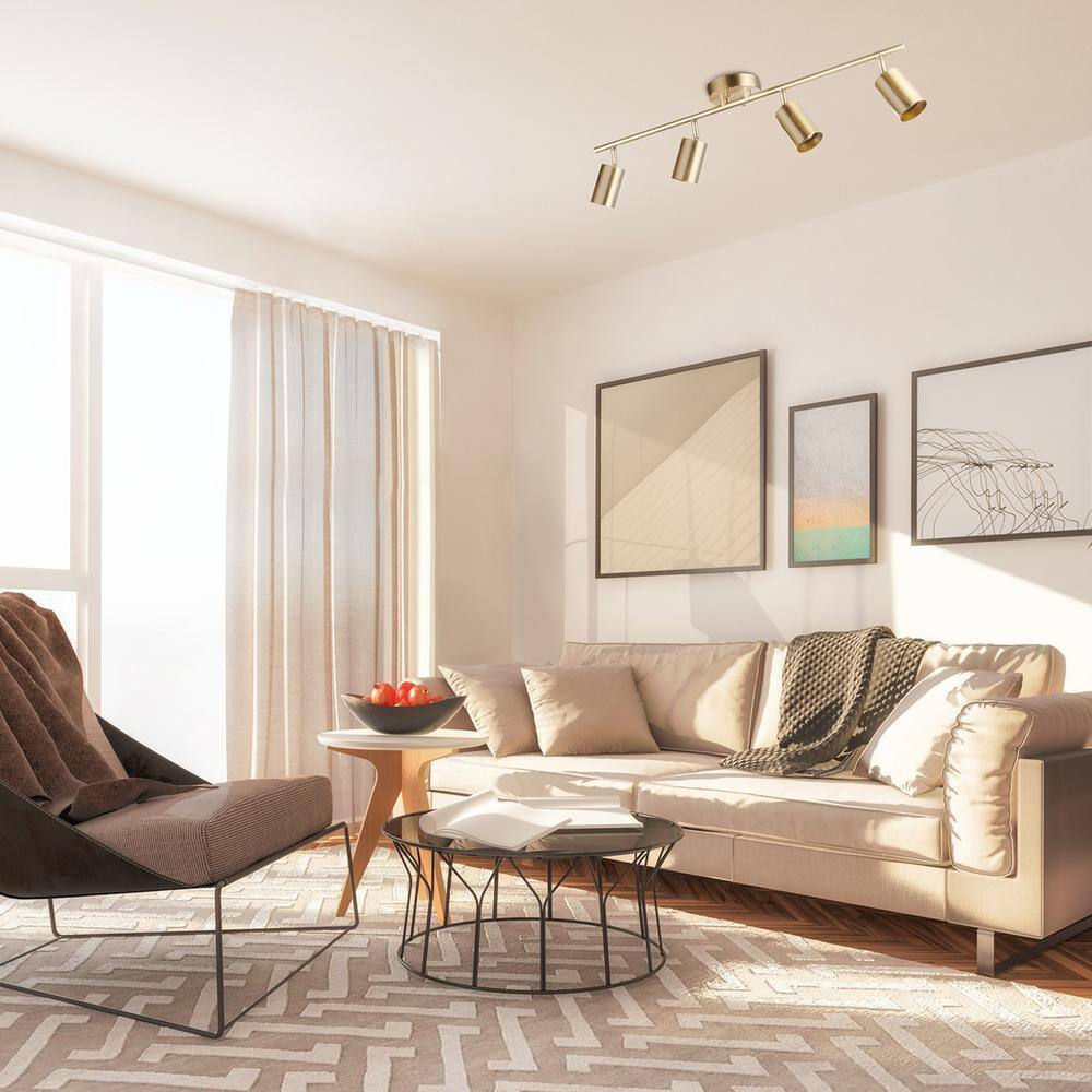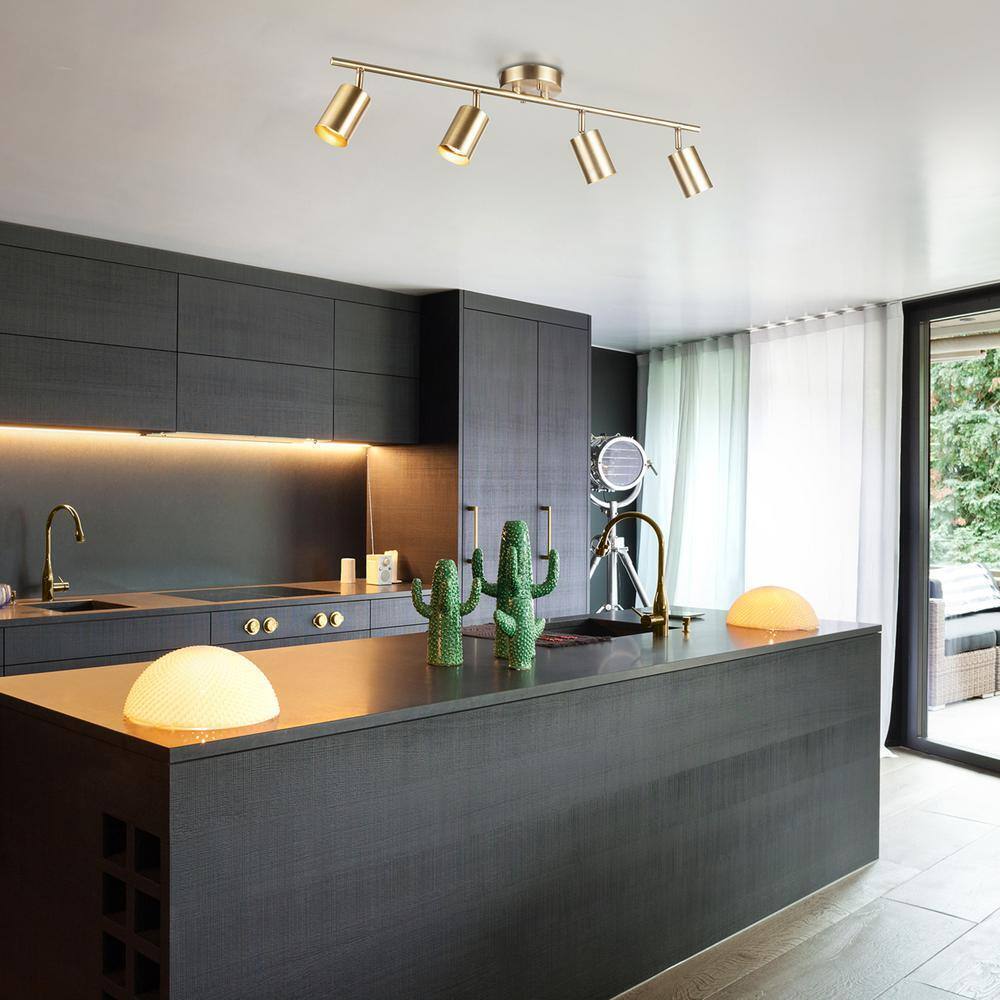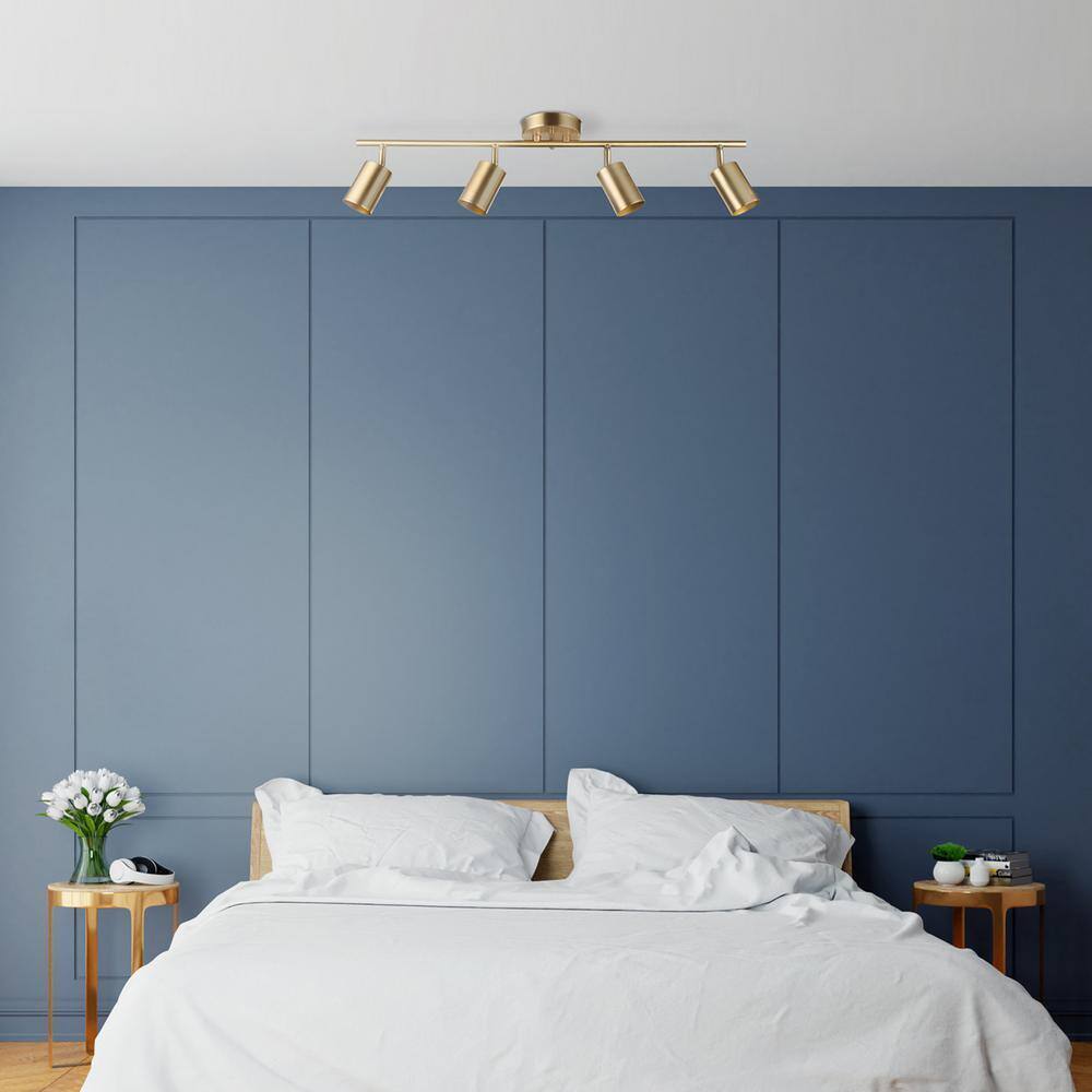 The Pratt Collection by Globe Electric offers a variety of styles that keep elegance in mind. With 4 cylindrical track heads that protrude from a slender track bar which sits on the ceiling with a matte brass canopy, the Pratt 4-Light Track Light becomes the perfect way to illuminate your home. The matte brass color accents any decor while the slim, streamlined profile is great for placement - perfect for adding a little glam to your bedroom, living room, kitchen, hallway or den.- Modern glam: playful sophistication and glamorous color come together in perfect harmony with the matte brass Pratt track light bar to offer a stunning example of the trendy modern glam style