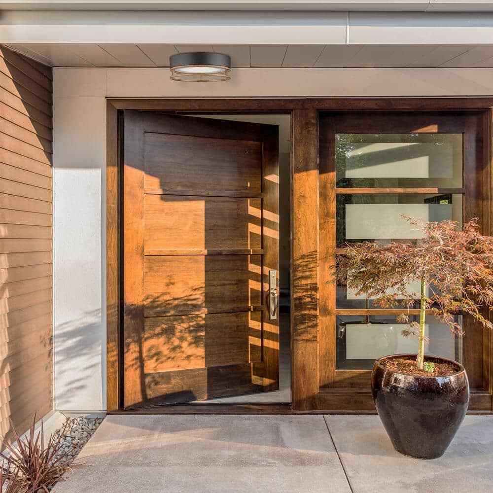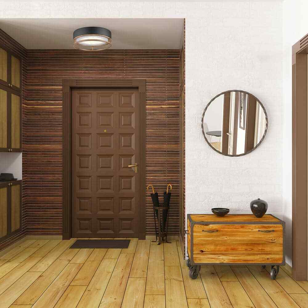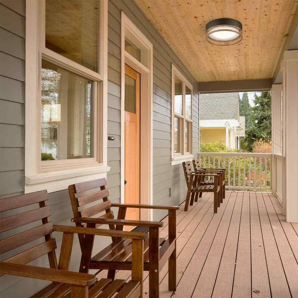 Statement lighting doesn't have to be large to make an impact. The 11 in. Ray LED Integrated Outdoor Indoor Flush Mount Ceiling Light is the perfect example of unobtrusive flush mount lighting that isn't oversized yet packs a mighty punch. The black base highlights a faux wood cage which surrounds a frosted diffuser to make a dramatic impact from every angle. Accenting all decor styles, you'll have fun placing this light both outside or inside your home.- Contemporary modern/ timeless design: the faux wood cage, matte black base and frosted diffuser of the ray outdoor flush mount ceiling light offers a contemporary and timeless feel that compliments any decor