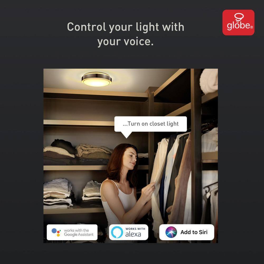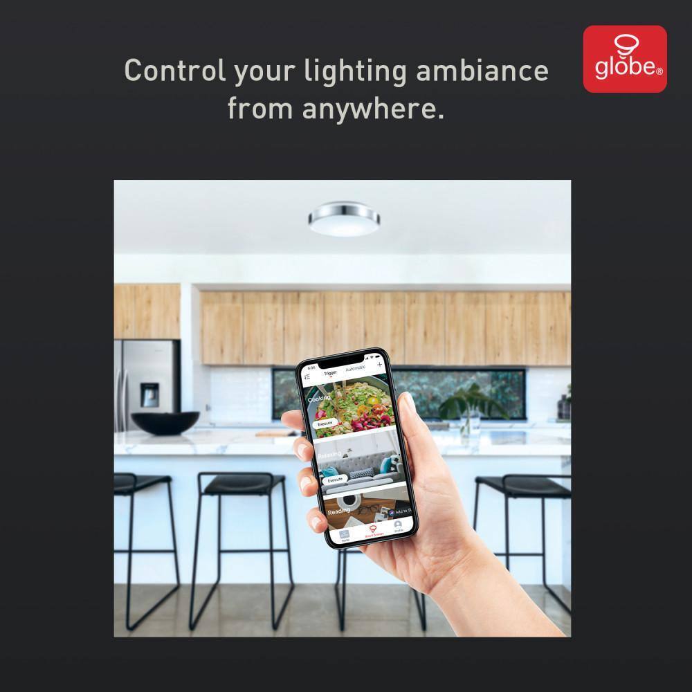 From sunrise to sunset, Globe Electric has you covered with smart lighting options. Simply install your flush mount as you would any other ceiling light, pair it with the GLOBE SUITE App and you're ready to go. Designed and manufactured to perfection, small details were added to create a sleek and dynamic look that adds a modern element to any room. The brushed nickel finish complements all decor stylings while letting you create the perfect lighting atmosphere for any situation. Build the perfect lighting ambiance for your next party. Make sure your lights come on when you arrive home. Choose the perfect lighting temperature for different times of the day or simply make sure your lights turn on and off at the same time every day to conserve energy. The choice is yours and the options are plentiful. Home automation has never been so easy.- Control from anywhere: control your flush mount using just your smartphone with the free GLOBE SUITE app
