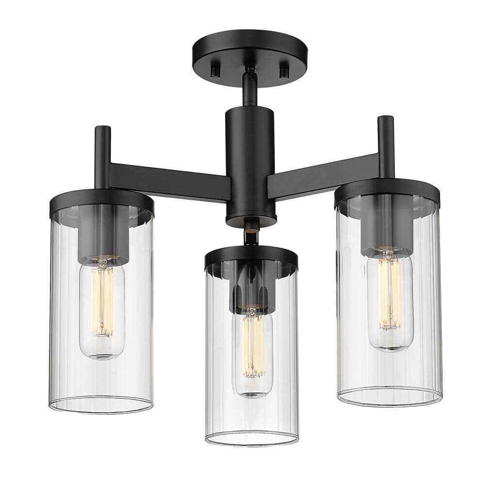 Golden Lighting's Winslett collection is versatile and transitional in style. Classic silhouettes are perfectly matched with clean, modern lines for a mixture of form and function. Bright bulbs shine within ribbed clear glass shades. The linear texture, made by a glass-blowing technique, creates the optical illusion of distortion. The vertical lines in the glass provide gentle diffusion while playfully refracting light. Offered in two highly adaptable finishes; Pewter and Matte Black, the Winslett collection is suitable for a variety of decors. This 3-light semi-flush creates a dramatic focal point and smooth ambient lighting.- Transitional design