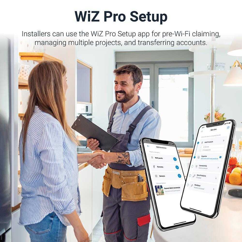 - Optional pro setup: installers can use the WiZ PRO Setup App and the online WiZ PRO Dashboard for advanced features built for managing multiple projects