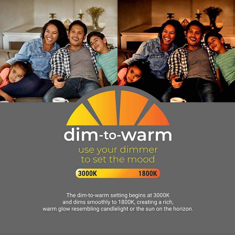 - Dim-to-warm technology included: use your dimmer to warm color temperature from 3000K to 1800K