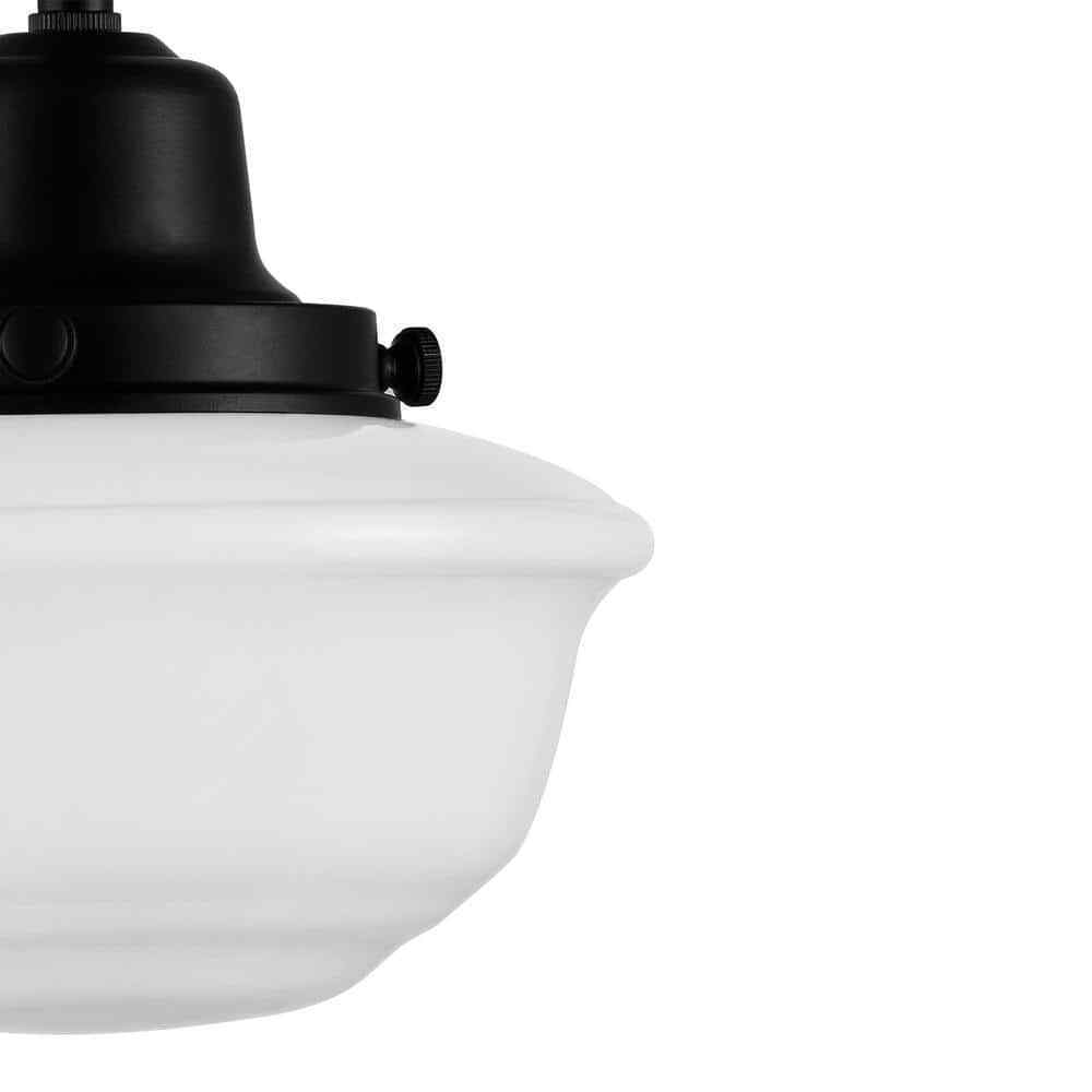 Enhance your interior space with this Hampton Bay Belvedere Park 1-light mini-pendant hanging light. Great for a kitchen, entryway or hallway, a frosted opal shade and a bronze finish create a stylish look. This dimmable fixture comes with all mounting hardware for a convenient installation. Steel construction ensures lasting use.- Assembly and installation parts included