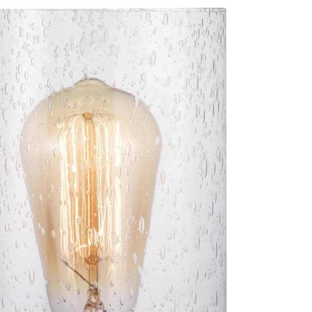 Enhance your home with this Hampton Bay Boswell Quarter four-light vanity light. A galvanized finish, clear seeded glass shades and painted chestnut wood accents add an elegant style to your space. For convenience, this damp-rated, dimmable fixture comes with installation hardware to mount it up or down.- Galvanized finish with painted chestnut wood accents