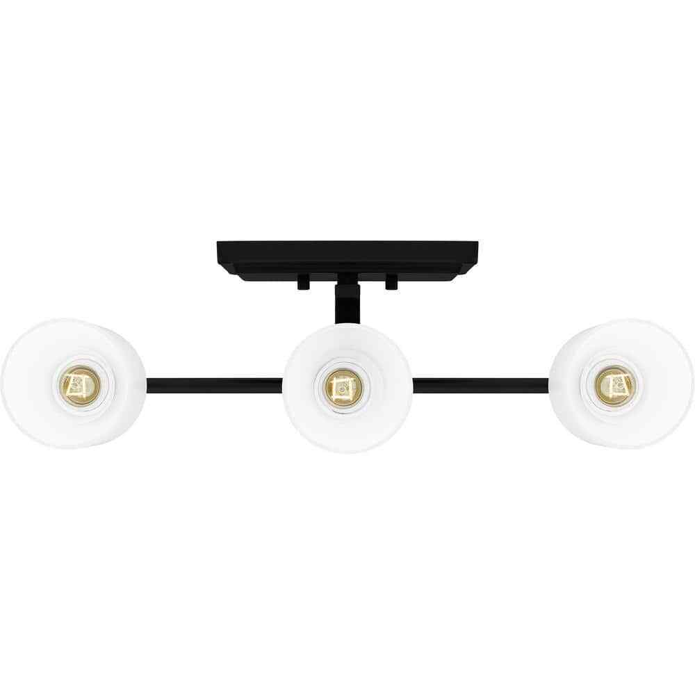 Illuminate your bathroom with this Hampton Bay 3-light vanity light. The matte black finish is paired with frosted glass shades for an authentic, modern appearance. Simple to maintain and simple to coordinate with other matte black light fixtures, this vanity light will help to maintain a polished look in your home.- Stylish matte black finish