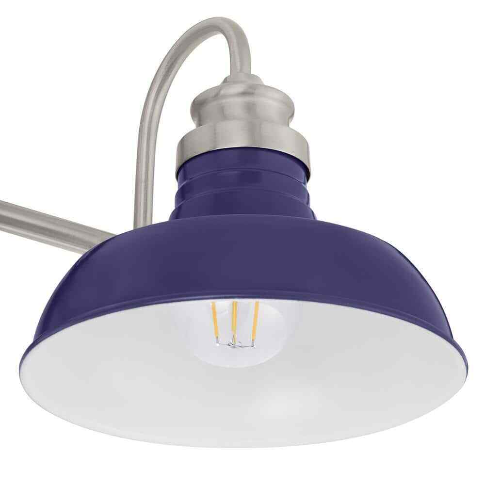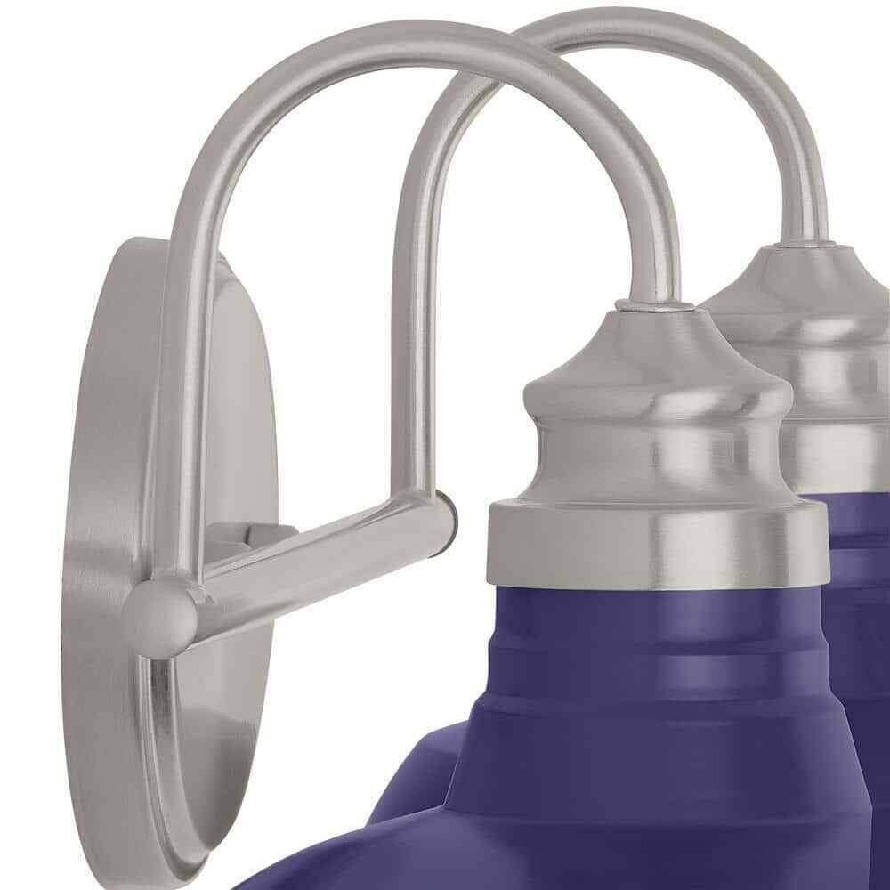 Bring new light to your powder room or master bath with this Hampton Bay Elmcroft 2-Light Brushed Nickel Modern Farmhouse Bathroom Vanity Light with Cobalt Blue Metal Shades. The brushed nickel finish and blue metal shades create an industrial look that complements any bathroom. This light fixture is designed for damp locations.- Stylish brushed nickel and cobalt blue combination finish
